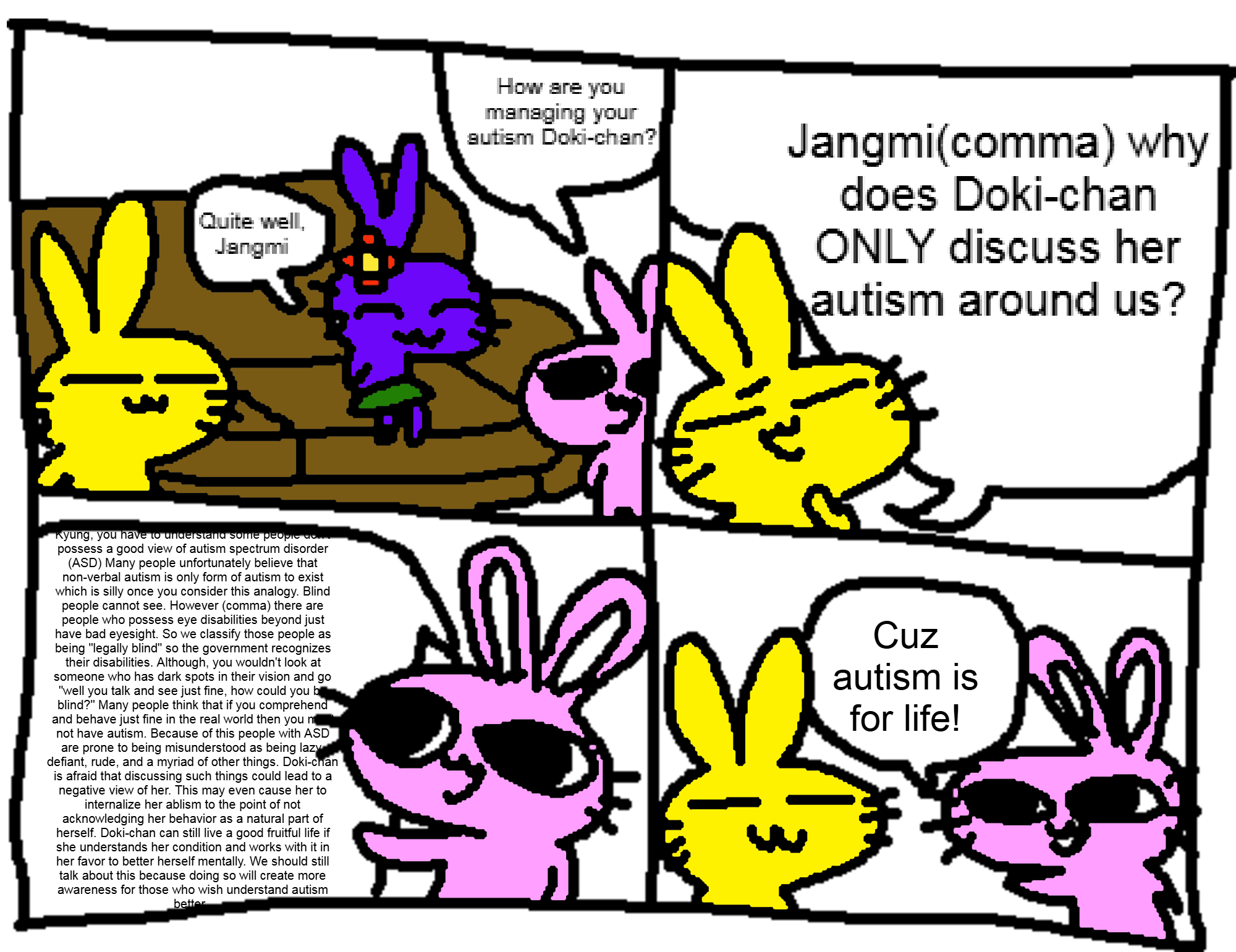 >>152579233for the record it's not making the comics more positive that's the issue, it's that you're saying that being positive and having a good life is the opposite of being autistic. it'd be more constructive if you stopped thinking in these binaries