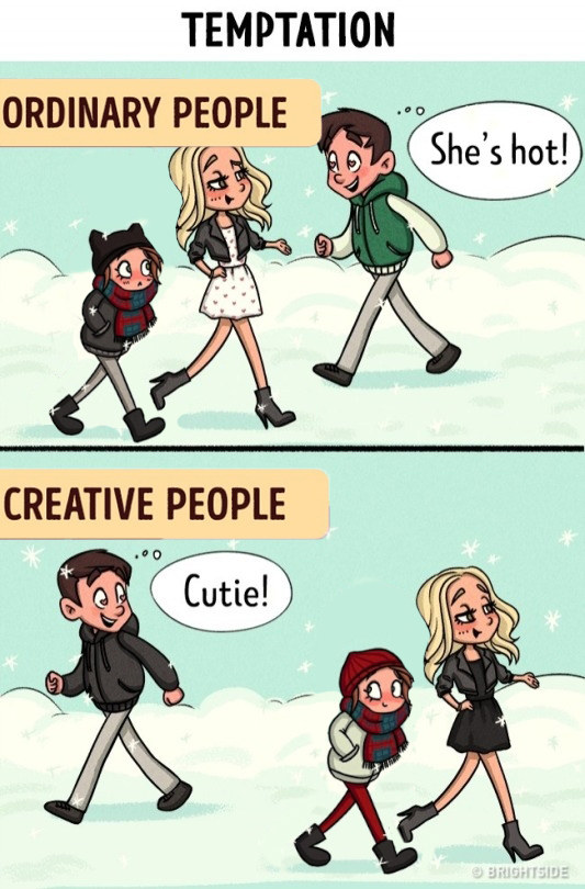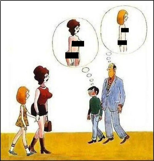>>152573968Where’s the comic of the dude and his dad walking past a chick and her mom and the dad is imagining the chick naked and the dude is imagining the mom naked? This comic always reminded me of that one