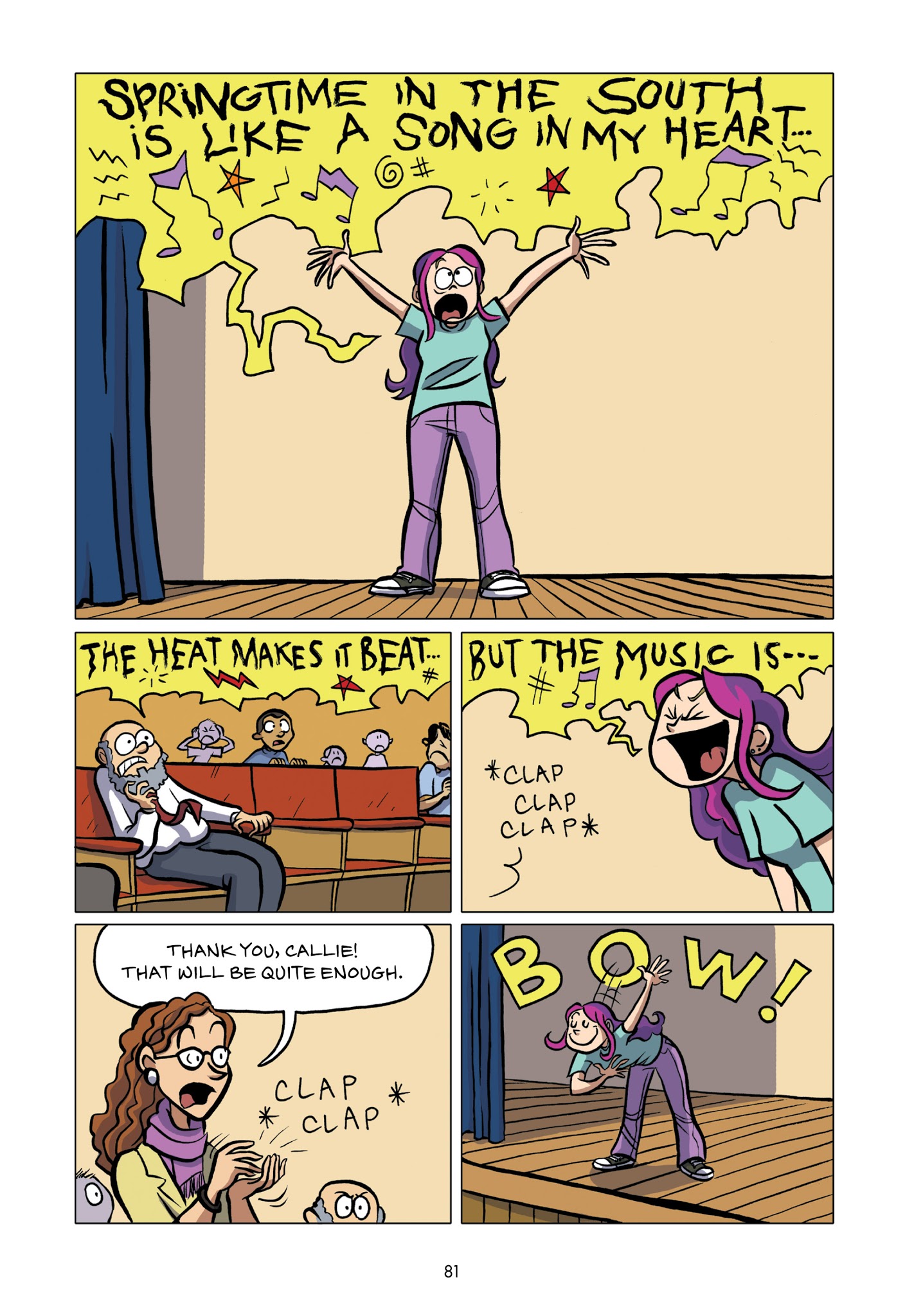 Callie loves theater. And while she would totally try out for her middle school’s production of Moon over Mississippi, she can’t really sing. Instead she’s the set designer for the drama department’s stage crew, and this year she’s determined to create a set worthy of Broadway on a middle-school budget. But how can she, when she doesn’t know much about carpentry, ticket sales are down, and the crew members are having trouble working together? Not to mention the onstage AND offstage drama that occurs once the actors are chosen. And when two cute brothers enter the picture, things get even crazier!Archive with all previous and future issues:https://desuarchive.org/co/search/subject/Daily%20raina/