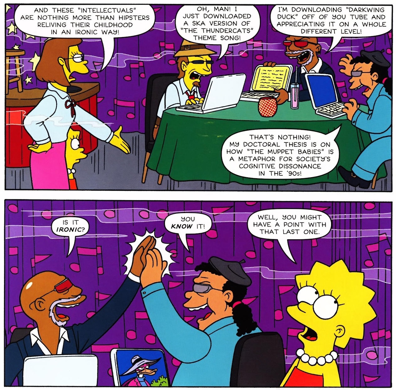 >>152577016>>a deep-seated hatred for every corner of popular cultureAs cynical as they were, they still took the time to give celebrity cameos, which influenced other shows like Family Guy and South Park to flood their episodes with dated references and petty jabs that are only cool "in the moment."
