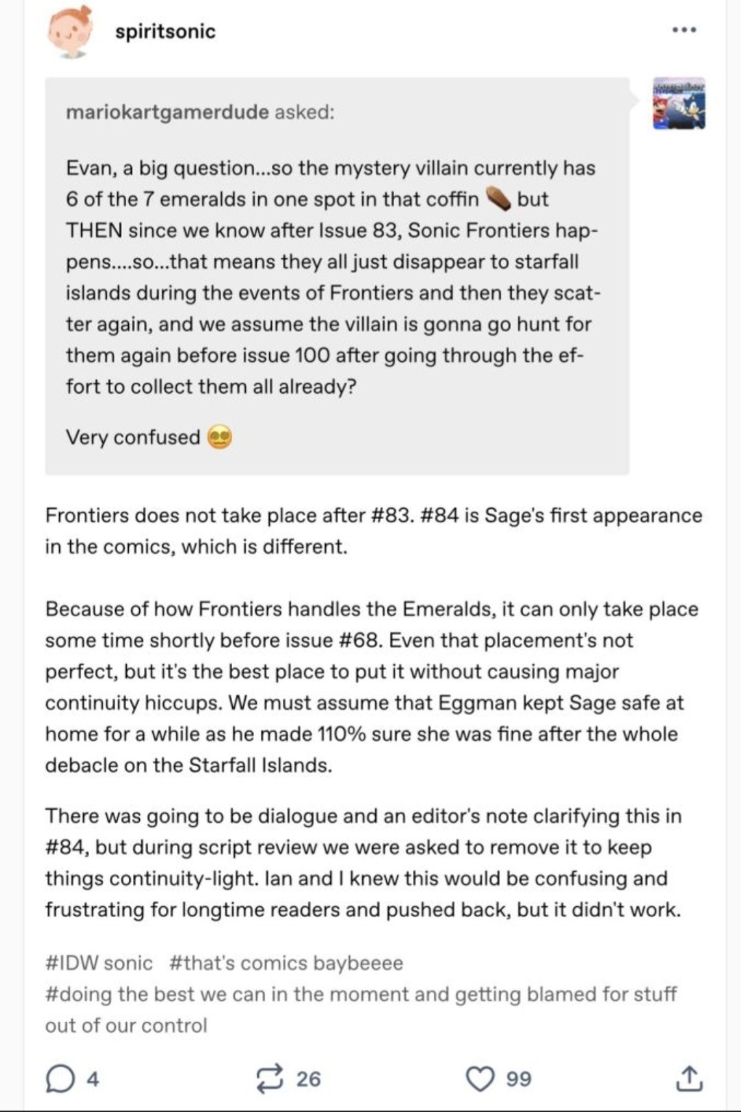 >>152584728Ian Flynn says otherwise. Truly he is the gift that keeps giving for putting Sonicfags in their place.