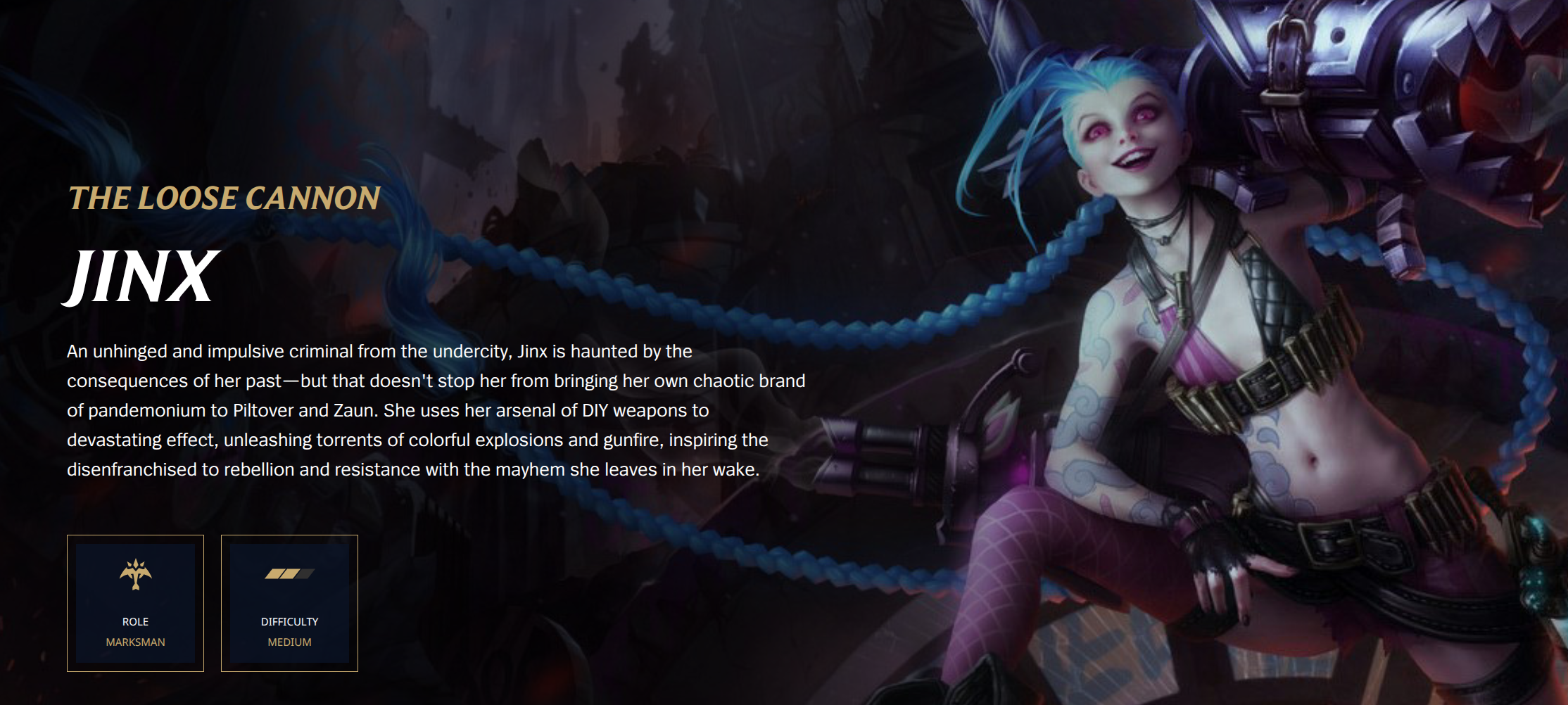 >>152585797They made the decision to break from the original worldbuilding, and they seem to have rebased the canon to Arcane (based on updated character descriptions like Jinx's which mention her Arcane story). But they seem to have made a decision to also just avoid details of how anything works