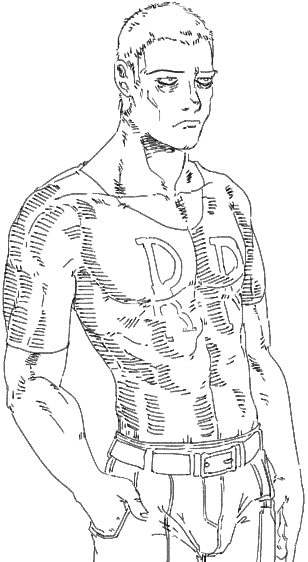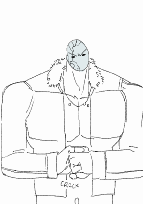 >>152592613Here's one of aforementioned doodles. My idea with him was he has peach fuzz for hair on account of burning it off, and unhealthily lean build, almost like a drug addict, due to the stress his power puts on his body. Deep dark circles at all times. I like to think he wears a dark grey turtleneck in his civvies.