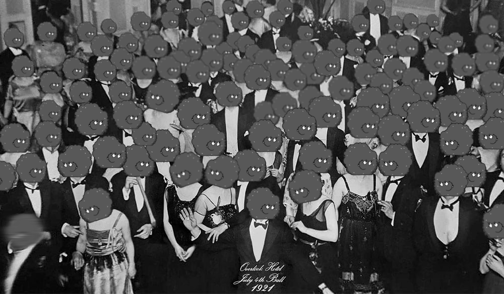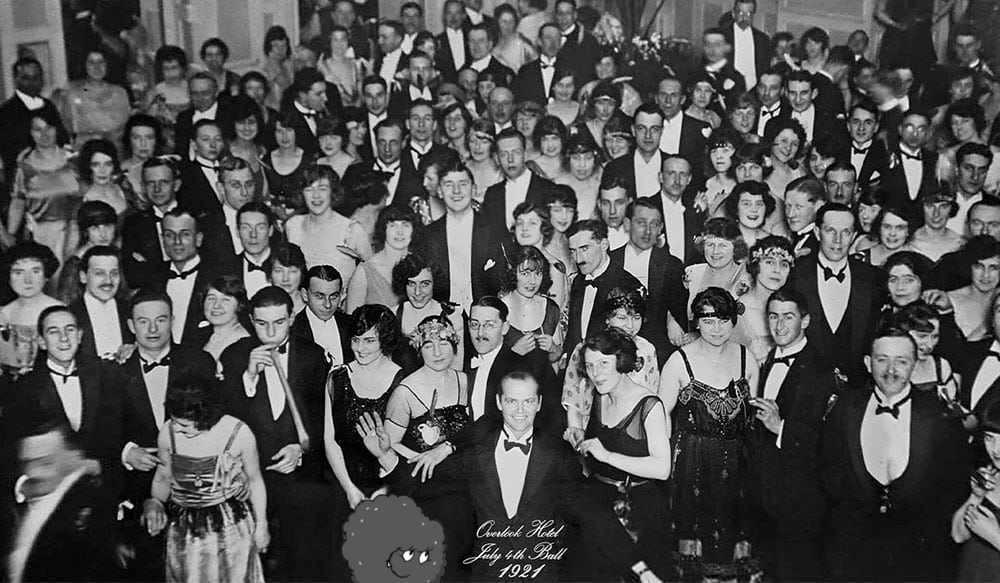 i wish i could do it but can you please put him in the picture of the overlook hotel where its revealed jack has always been there (from the kubrick shining movie)