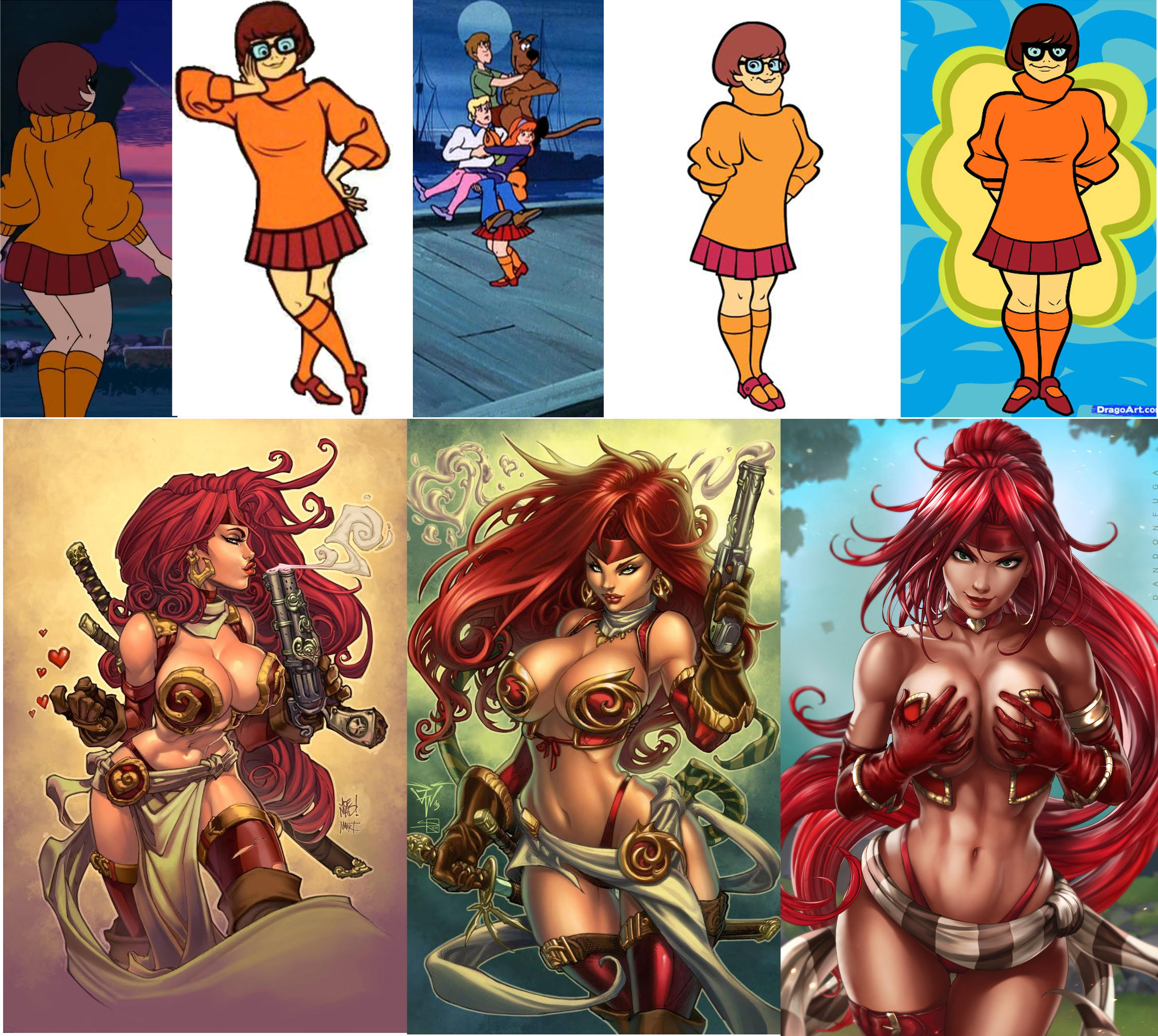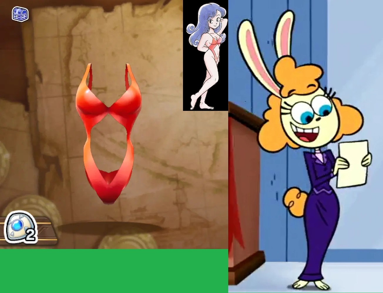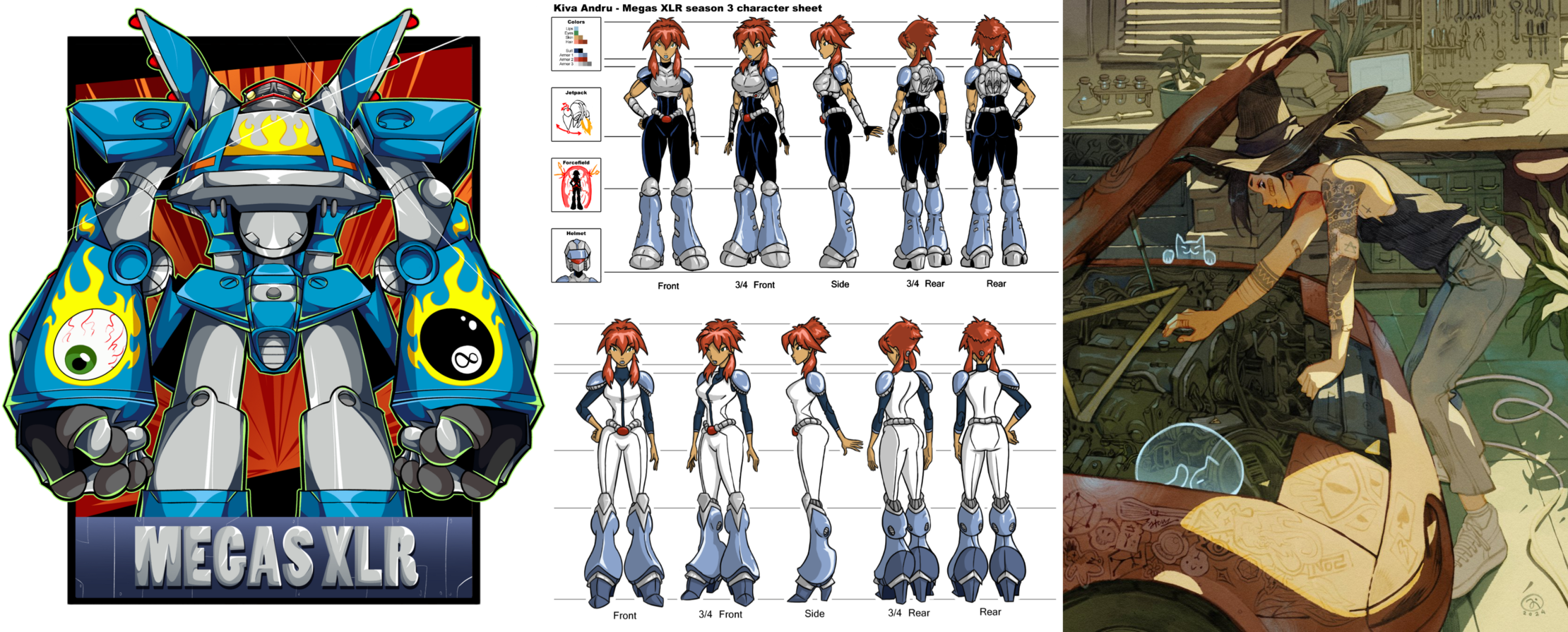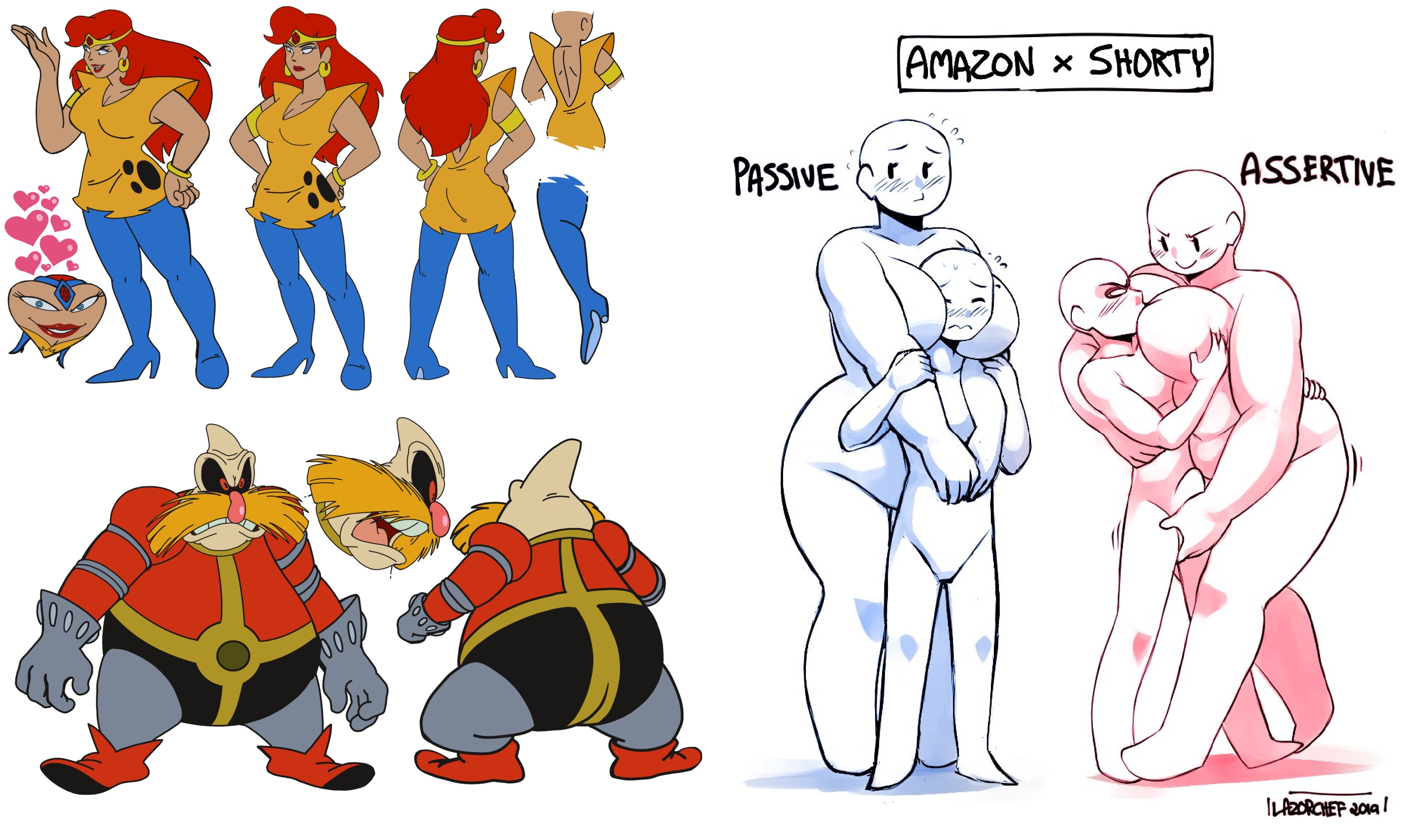 Requesting Echo from Clown Corps having a wardrobe malfunction, kind of like the comic on the far right. The top-left reference is her ‘villain’ uniform, and the bottom one is her civilian look.