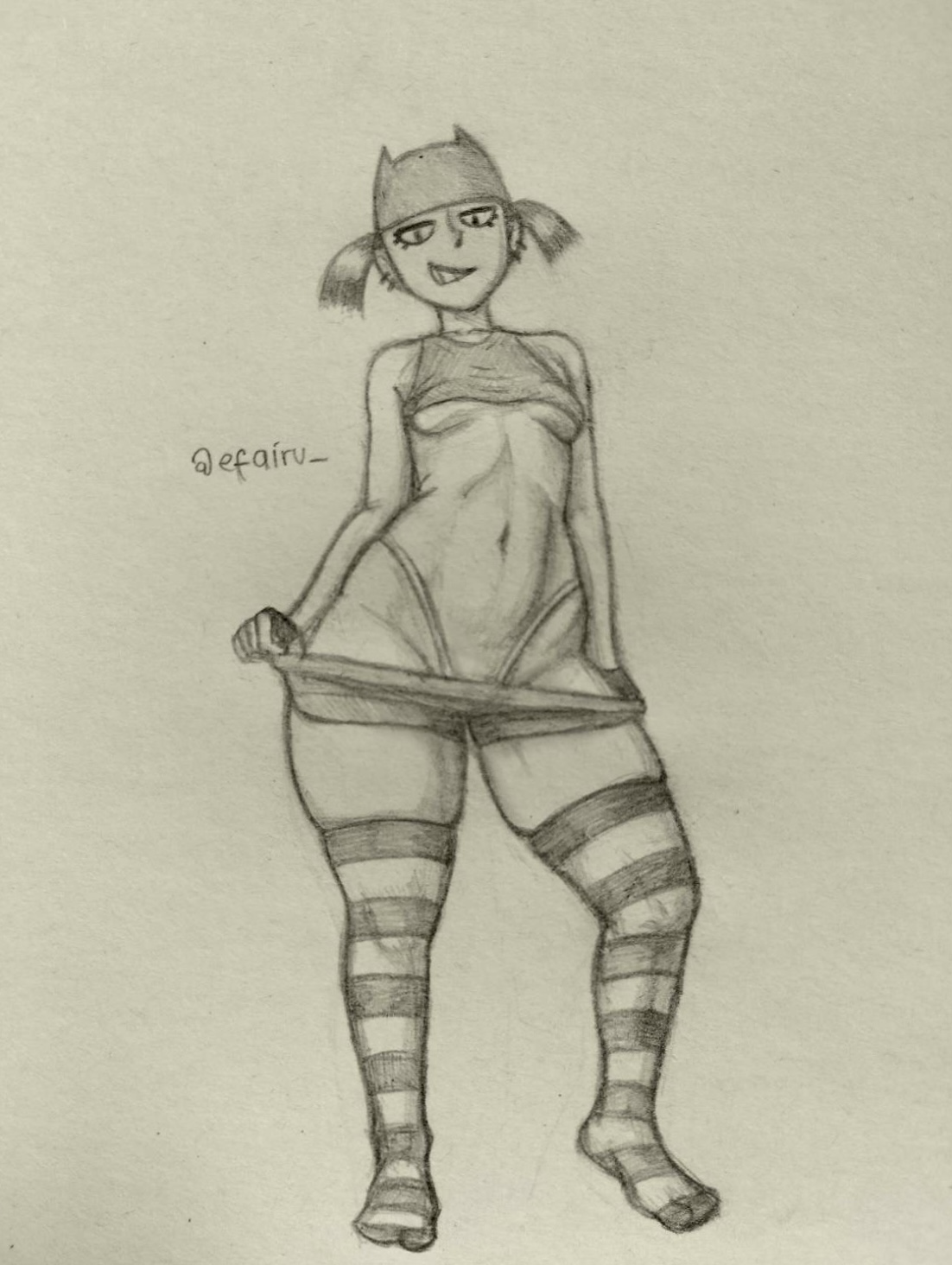 Requesting Kim Pine from Scott Pilgrim posing like Mirko, lifting her skirt on the left side to reveal her spats-covered buttcheeks while adjusting/fixing her underwear.