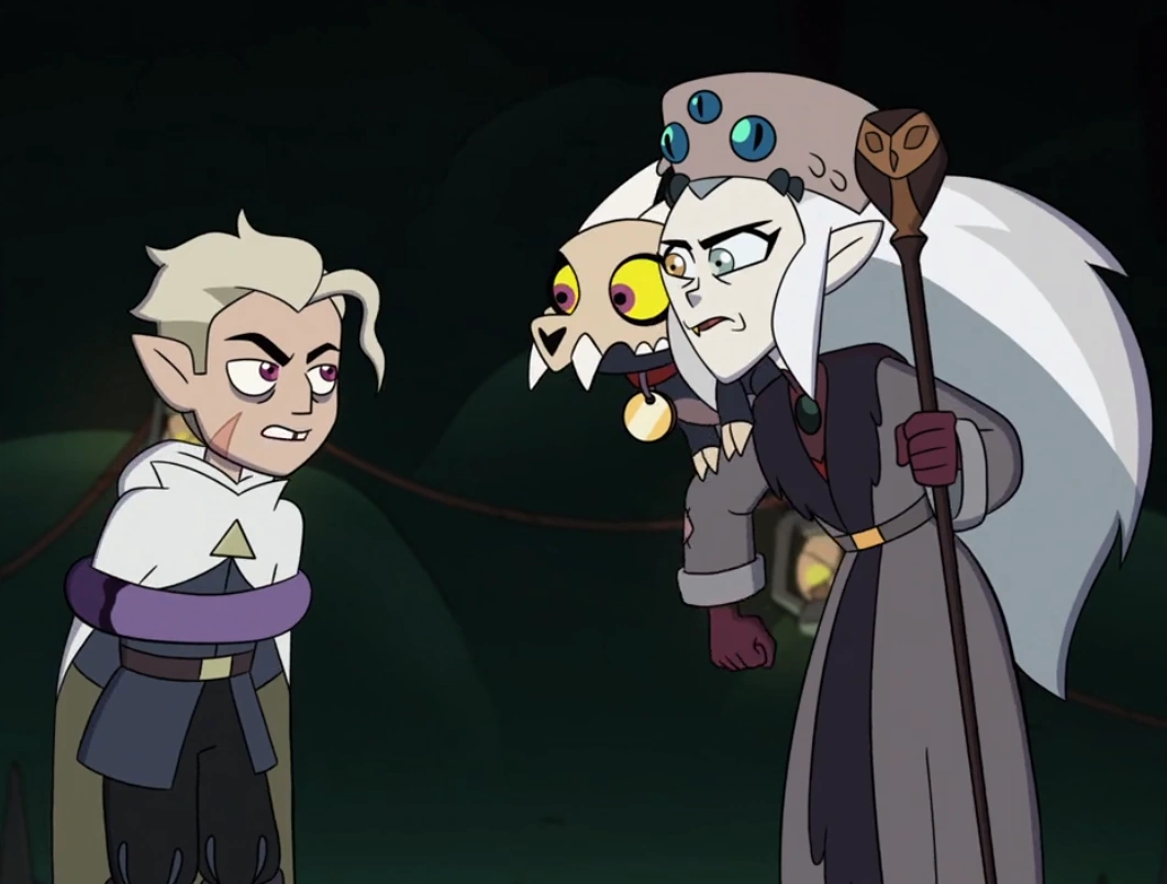 Requesting Aranea Serket lying in the same pose as the girl in the reference, lubing her breasts with oil.