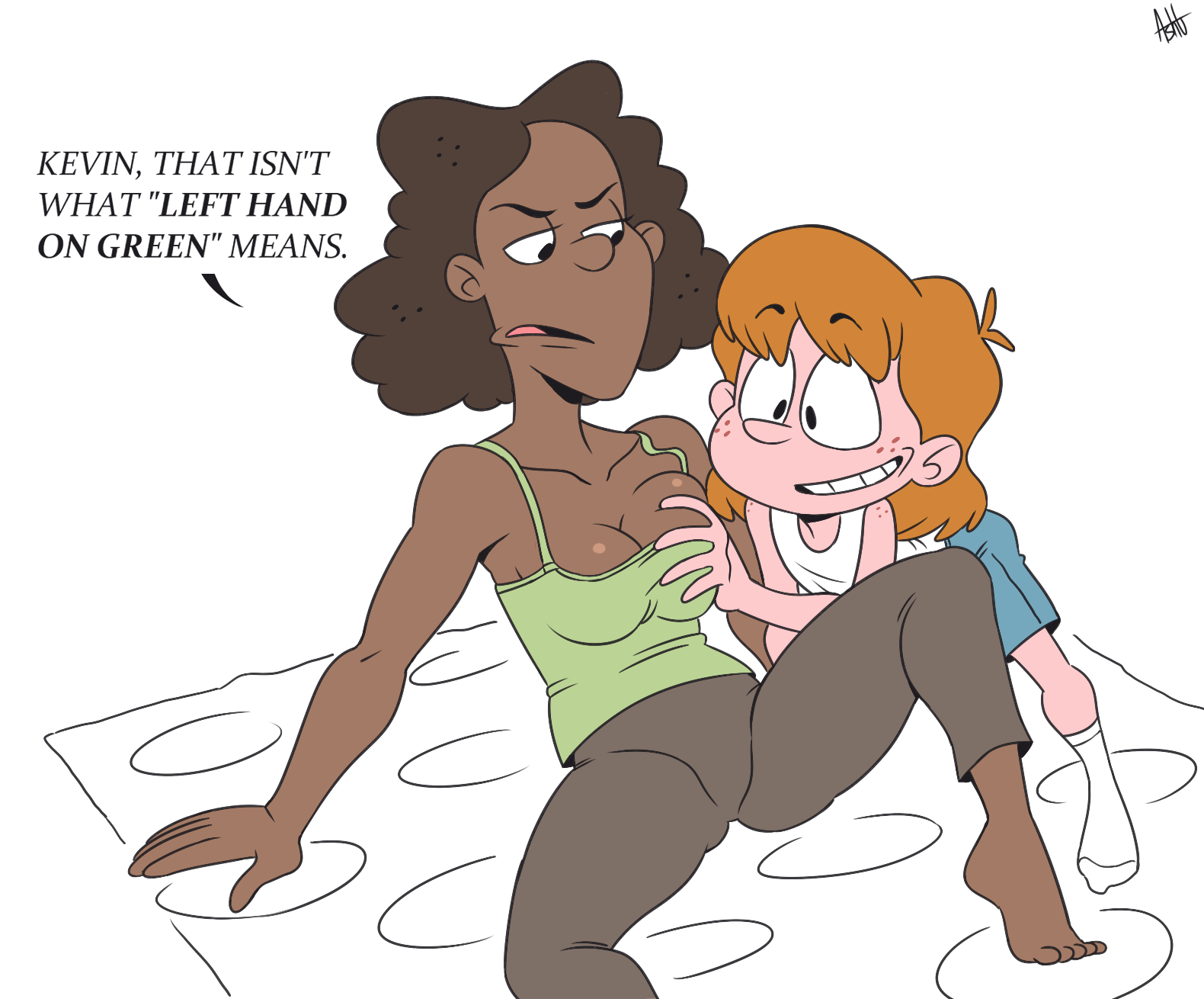 Requesting Johnny and Jack arm wrestling at a bar or club, which fits well in the scene. Jack is almost winning because of his training, but right at the last second, Johnny spots a sexy waitress at the next table and uses that to power through, fairly slamming Jack to the floor with no cheating. Please have Johnny with an apple juice box next to him and Jack with regular liquor.