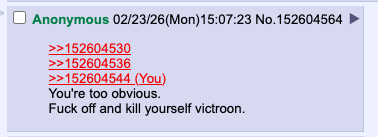 >>152605768>(input 3 or more delusional samenic replies here "agreeing" with the following post like usual)