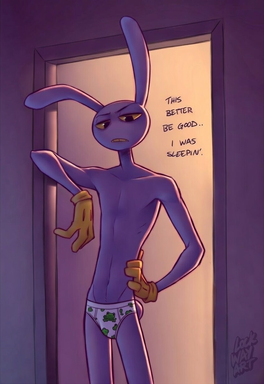 >>152621061>"Bunny!">"Aww, Ragatha, you really like bunnies, don'tcha?">Ragatha nods enthusiastically>"Uh-huh! Bunnies are so cute, and soft, and gentle, and---">Jax appears in the circus