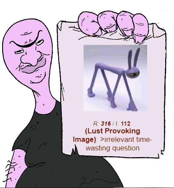 >>152618789Ragatha was the one to hogtie him and I'm thankful to see canon interactions where she's directly confrontational when she's protecting Gangle from his abuse. Even when Jax accidentally hit Gangle with his baseball, Ragatha got right up in his face and told him off! She isn't as meek and helpless and the fandom makes her out to be. Jax probably resents the fact Ragatha isn't quite as easy to push around compared to someone as spineless as Gangle. It still surprises me that Gangle is so popular, or atleast more popular than Ragatha, Zooble, and Caine. >>152619405Your artstyle is really distinct and I adore how expressive he is on the right! >>152619458Considering the plot of the story is that they are trying to escape, it wouldn't make sense narratively if they were AI all along. >>152619869I'm glad I found this thread in the meantime! I've been going through withdrawals and I've been watching all of the cast charity streams in the meantime to comfort myself. >>152619995Eh, I feel like you can interpret anything to justify your desires. Narratively speaking there isn't much substance to the show as it is, so I'm not too critical of "out of character" depictions of the characters, considering we barely know much about them as an audience despite being 7 episodes deep. I'm not above thinking the girls might cozy up to Jax or Kinger if they have a natural affinity towards men. People trying to find some semblance of normalcy might be comforted with intimate acts in order to chase dopamine in their depressing circumstances. I'm not saying they would be sluts, but Zooble expressed sexual frustration, so it's clearly on their minds even if it isn't discussed regularly. >>152620001What would be considered out of character content made by women?