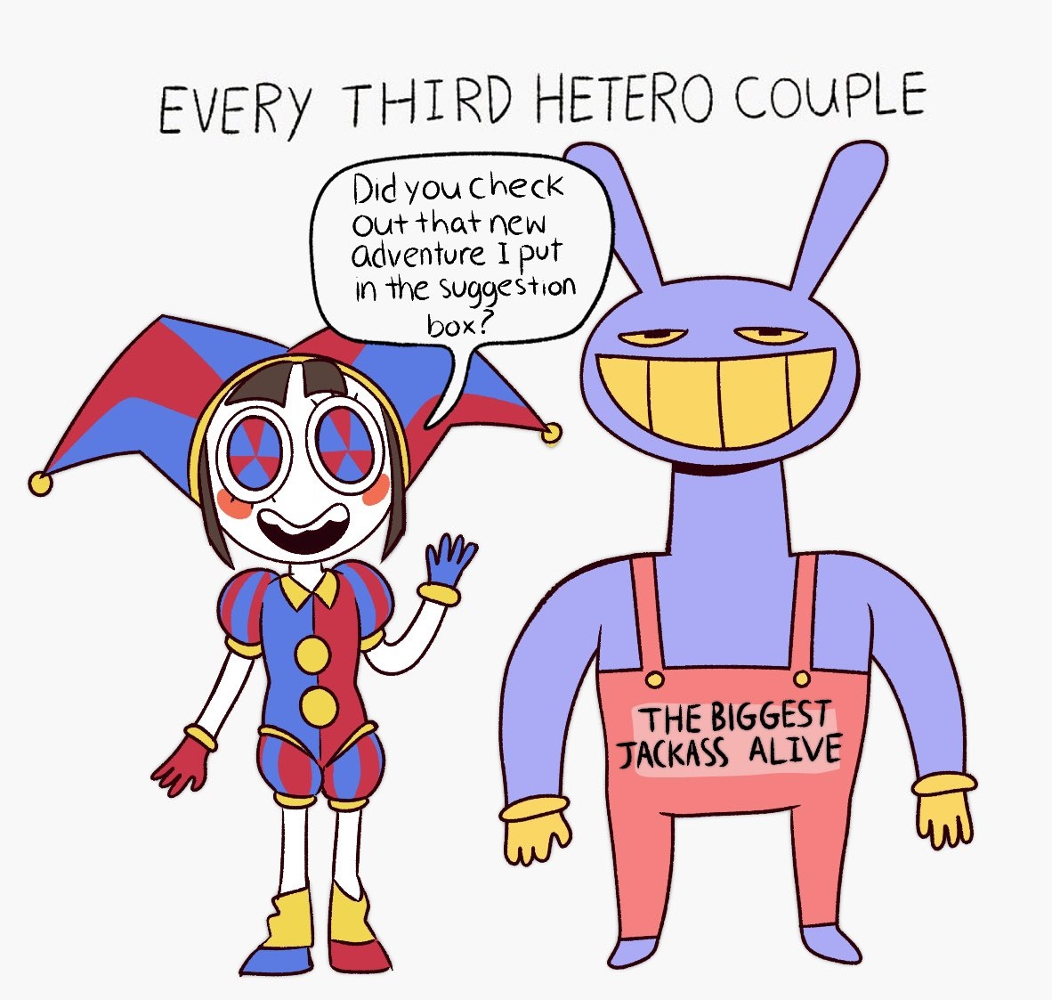 nth for I can't wait for this dumbass show to be over because it's become so Jax-centric. It should've just stayed focused on Pomni and Ragatha's relationship, like it was at the beginning.