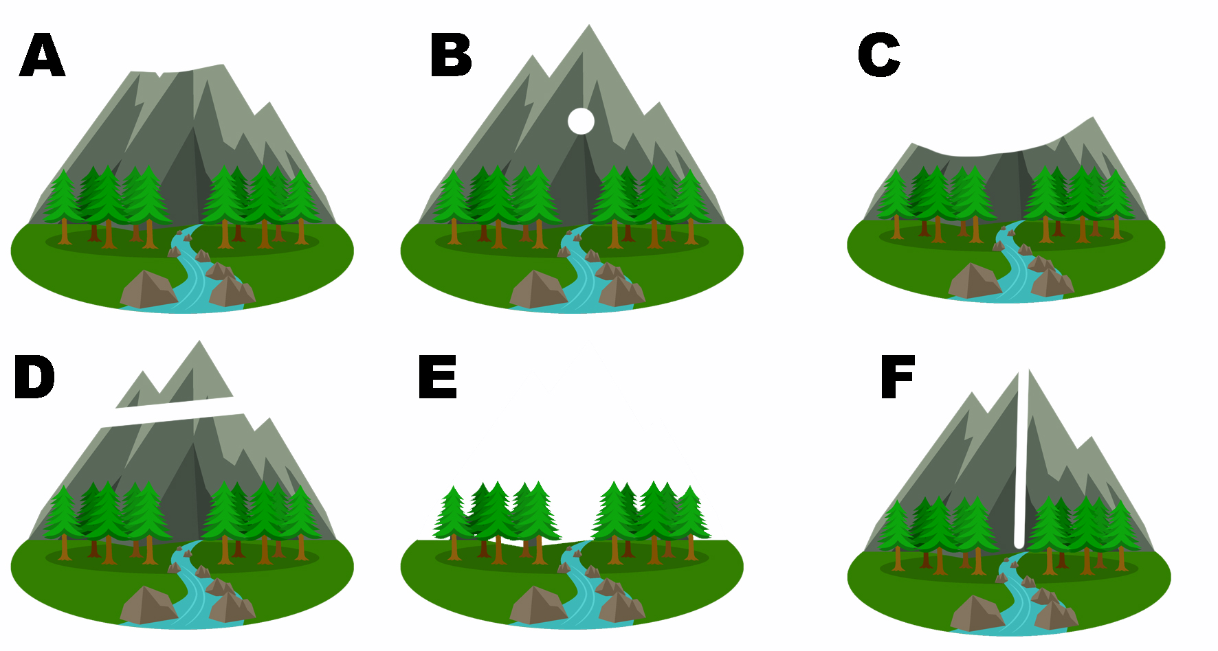 Quiz time!Tell me which mountain(s) are considered destroyed. Assume every mountain is the size of an average mountainEvery mountain here share the exact same dimensions, density and durability.