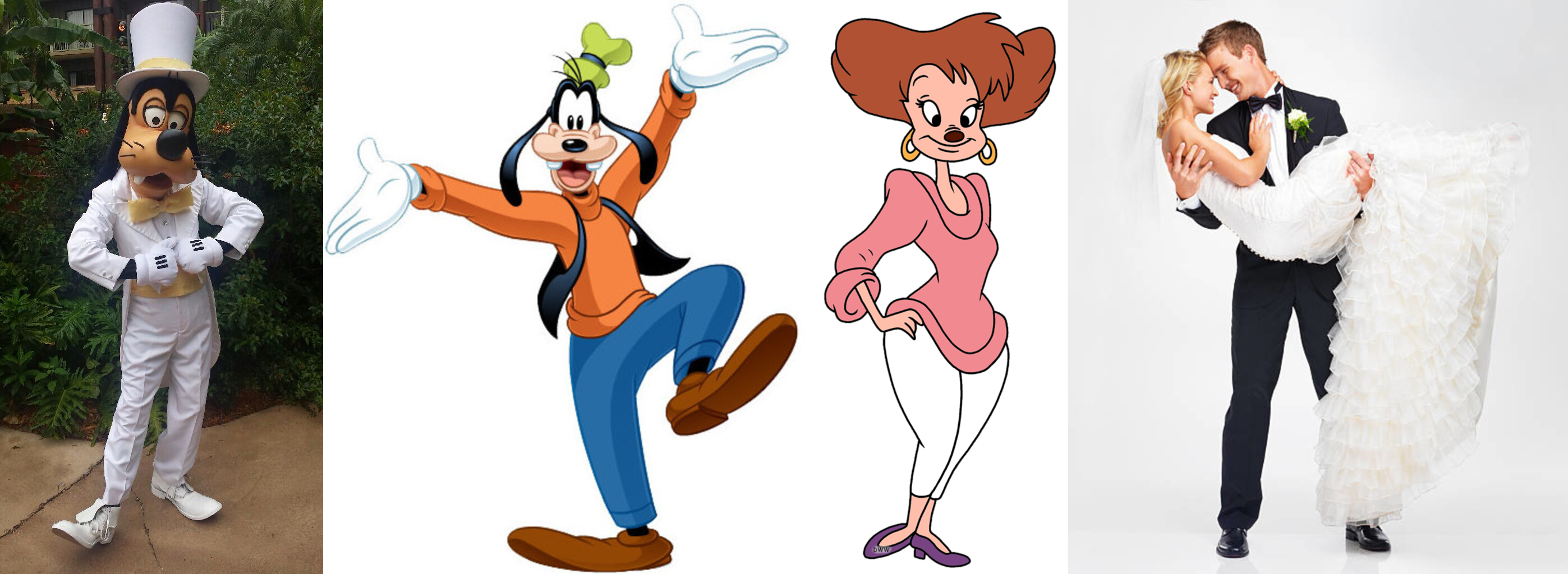 Requesting Goofy and Peg Pete on their wedding day with Goofy carrying Peg as his bride.