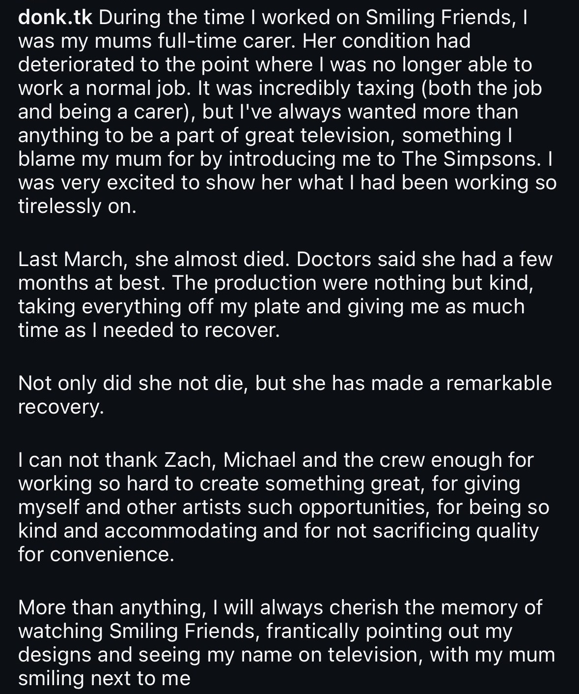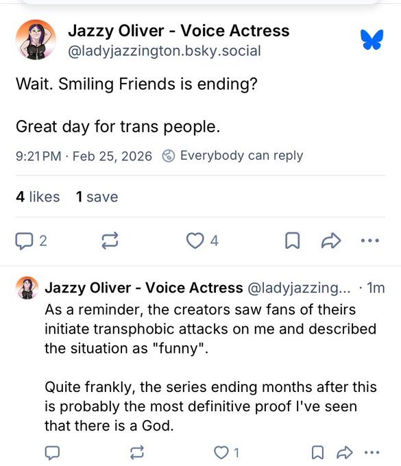 The one downside of Smiling Friends ending early is that it's going to be treated as this uncritiquable sacred cow for years after this.