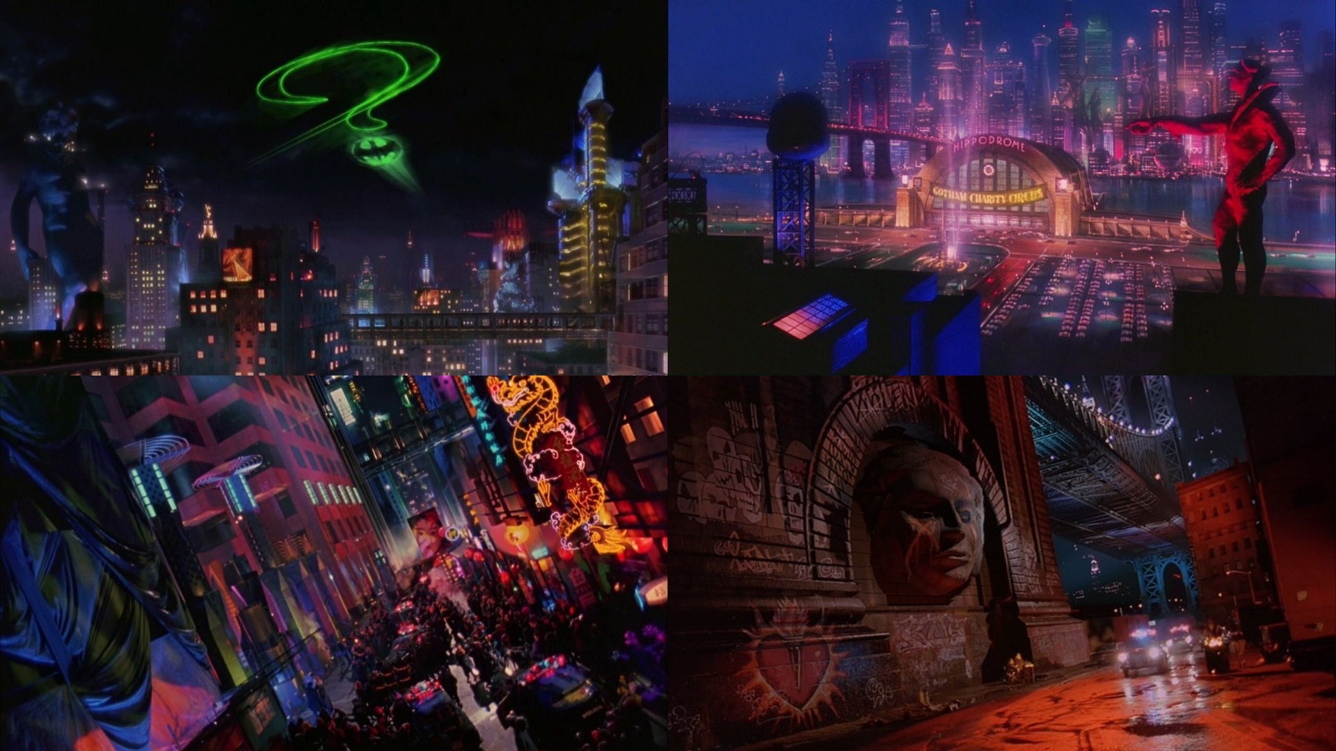 The directors commentaries are interesting to check out on these two movies. One perspective I never considered is that Schumacher is from the first/second generation of Batman fans. His whole push for a colorful Gotham was driven from the childhood Batman comics he read growing up, with their bright four color look. At the same time, he's also bringing in his own artistic influences from the club scenes, from pop art , picking up the gothic/horror influence of Burton, and so on. He was an interesting character. When the Flaming Lips comes on in the Riddler's apartment scene, he excitedly remarks that he loves the Flaming Lips. He would've been like 60+ on that commentary, him being into a band that's more of a Gen X/early millenial thing is kinda interesting. You have this whole range of influences from across the 20th century mashed into these movies. At one point he considered making the Batmobile look like the 40's/50's bubble dome design, before heavily veering off last minute to the Geiger inspired design. All in all, a very unique style that I doubt we'll ever see again in superhero movies.