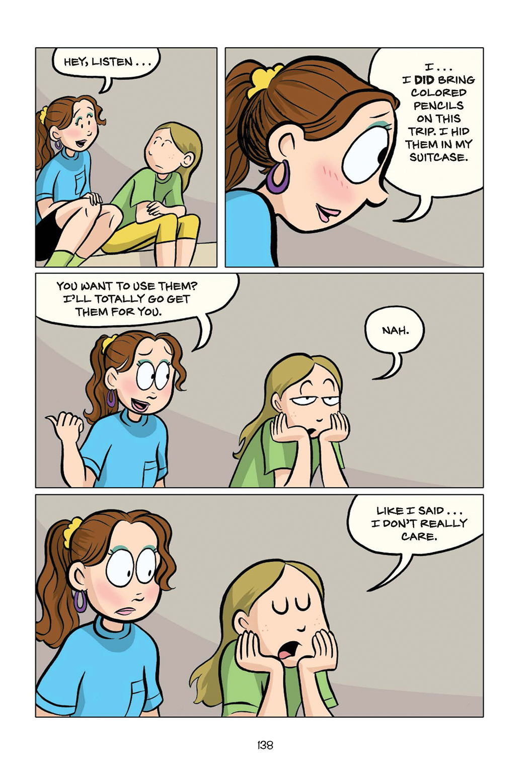 She lied about having the colored pencils the whole trip even though Amara knew she had them and tried to appeal to their cousin this whole time