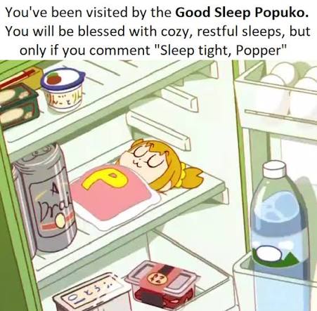 >>152665581Sleep snug, smug>>152666042Sleep tight, popper>>152666045Thanks