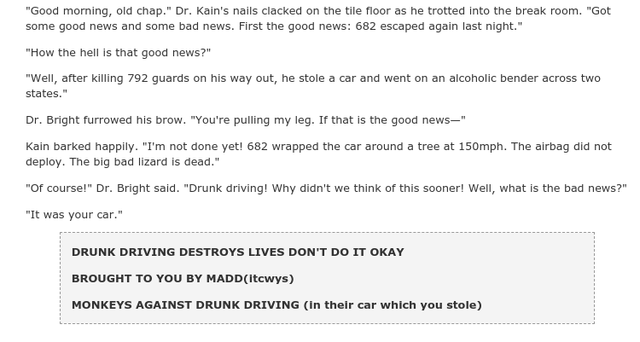 >>152679678You mean that time he fought scp-001 the prototype or when he was caught in a explosion that damaged him?