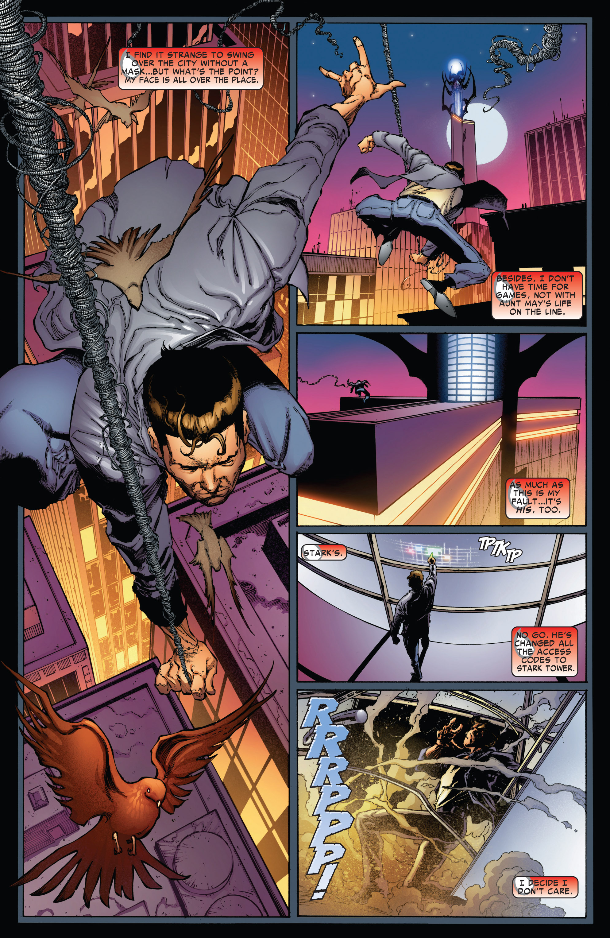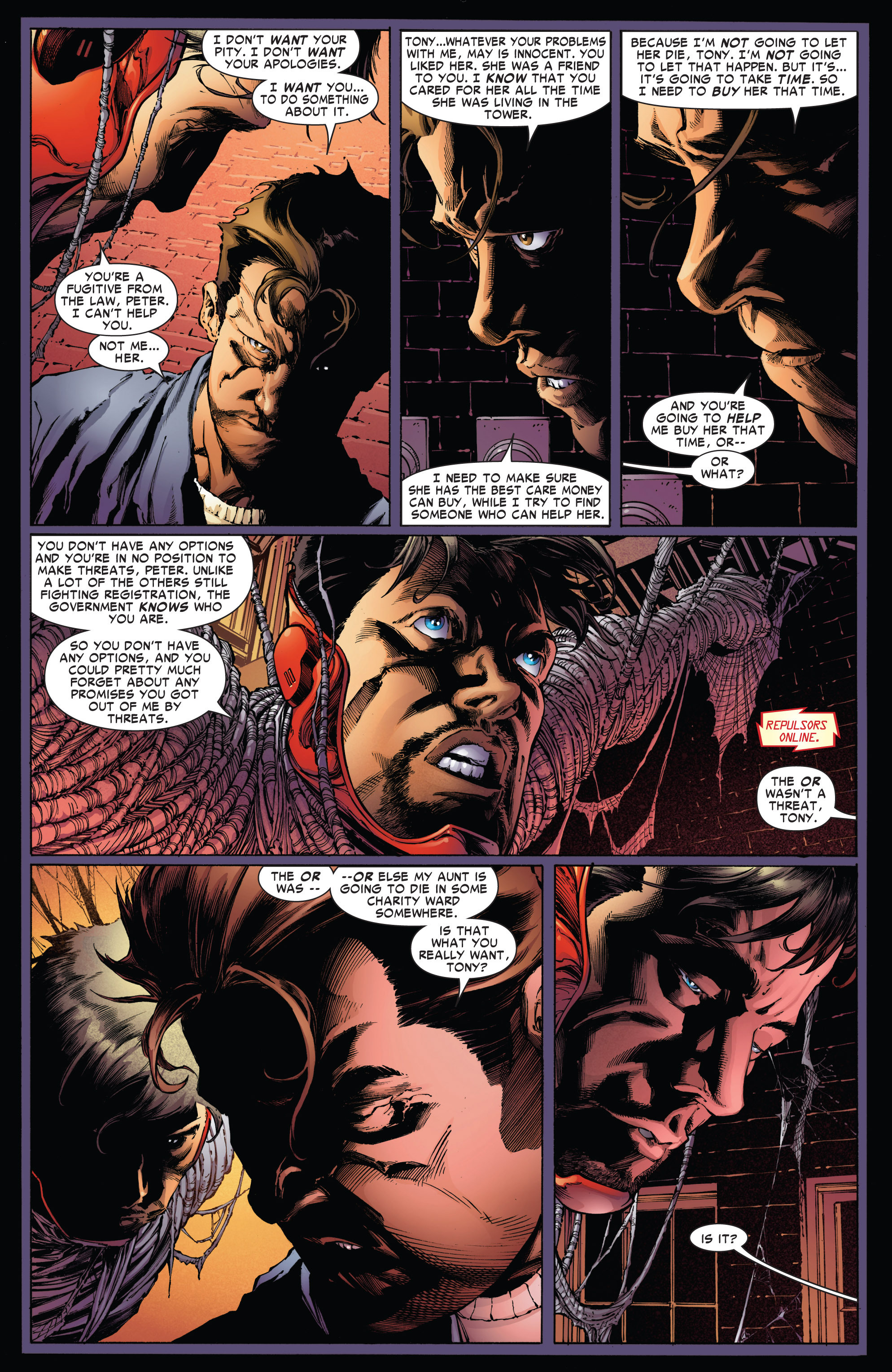 Aunt May won't forgive Peter for what Ben did. Peter has to leave because Venom is outside fighting female Dock Ock. Peter learns what Ben did to MJ and they have a good conversation and square everything out and Shocker is only hurt and no one else is killed
