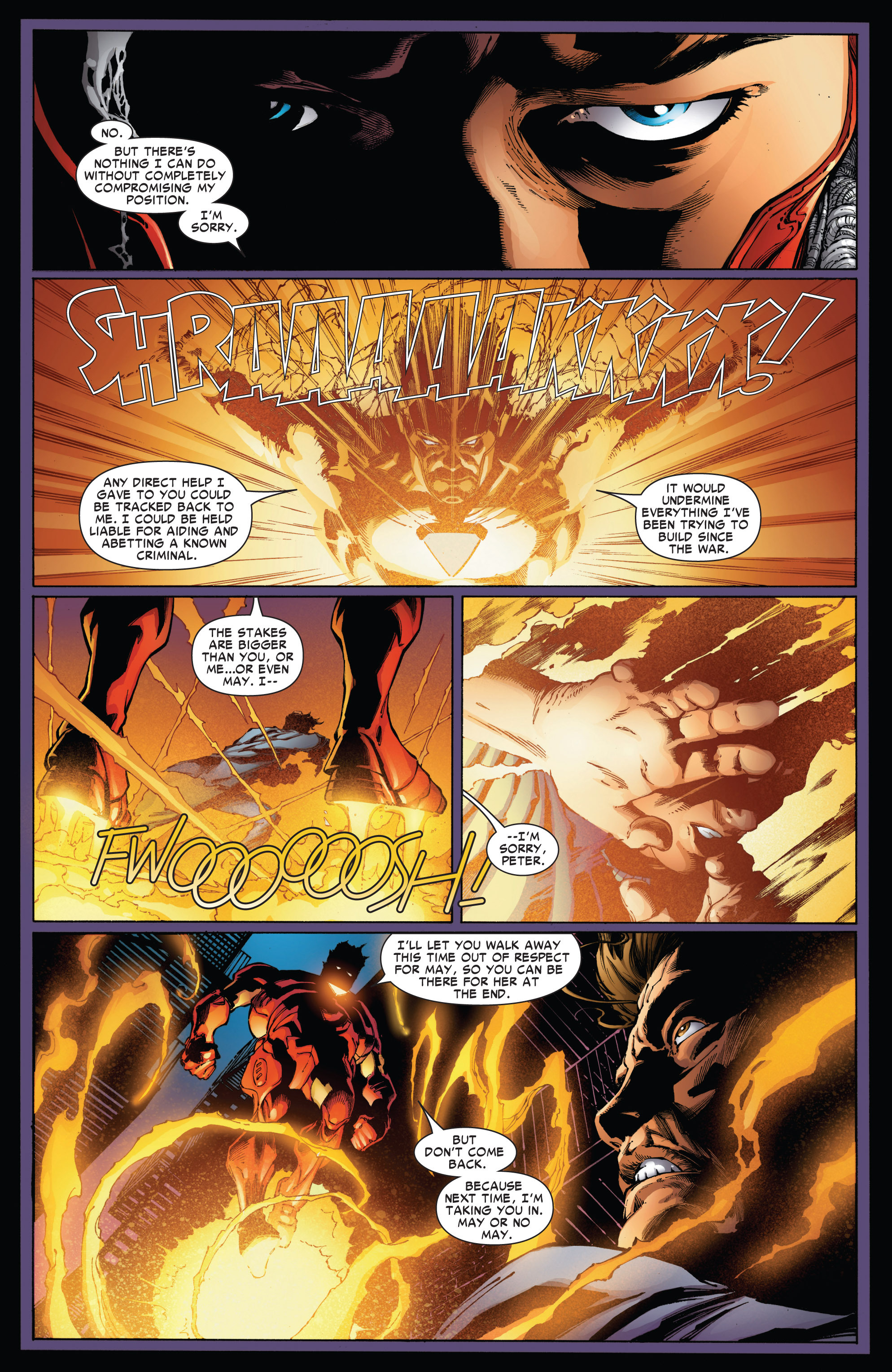 So it looks like May is still pretty angry with Peter, and she says she can't forgive him that easily this time. By contrast Peter and MJ have a good talk and patch things up pretty quickly.