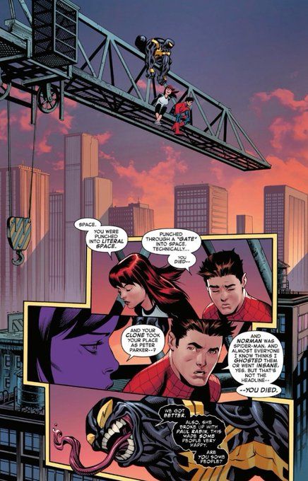 Wanna wait till the full issue, but the peter/mj bit seems okay, tho a little too meta, and the drama too drawn out but its not baad. Some of the dialogue feels a little sloppy too. And lame kill ngl.