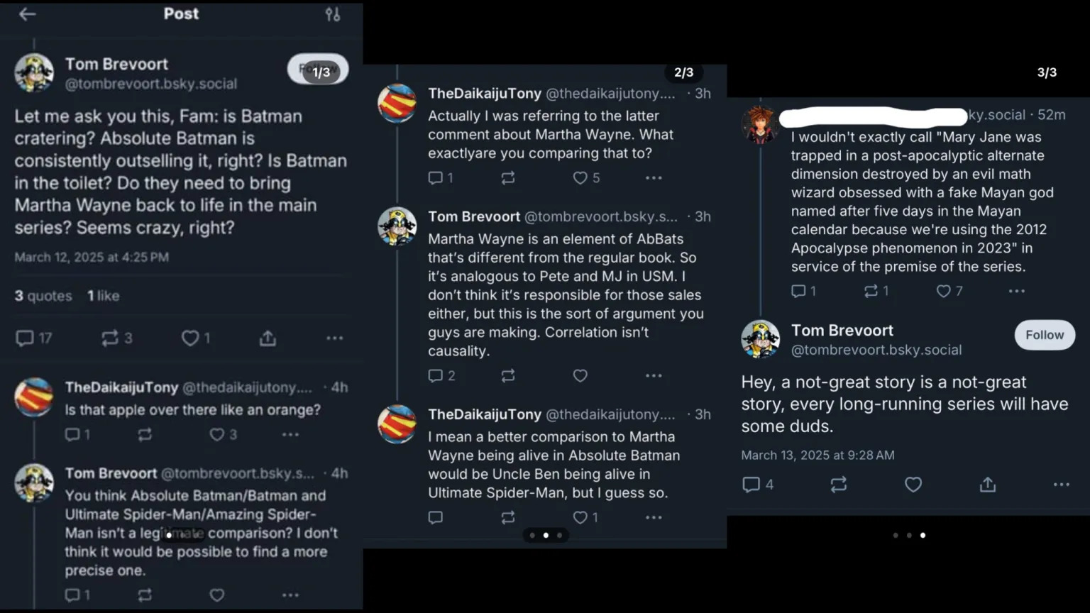 >Ultimate Spider-Man>Has muh Peter and MJ>We buy it, it becomes Marvel's biggest comic>Amazing Spider-Man>Does not have muh Peter and MJ>We don't buy it, it underperforms despite the greater level of effort and resources needed to create it compared to a side book.Simple as.