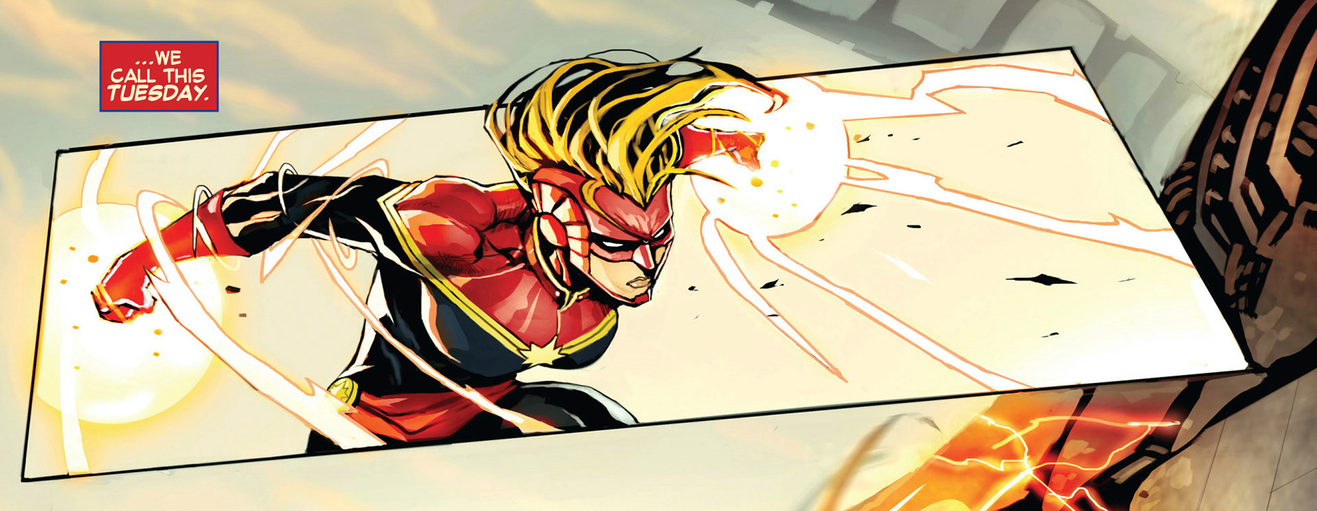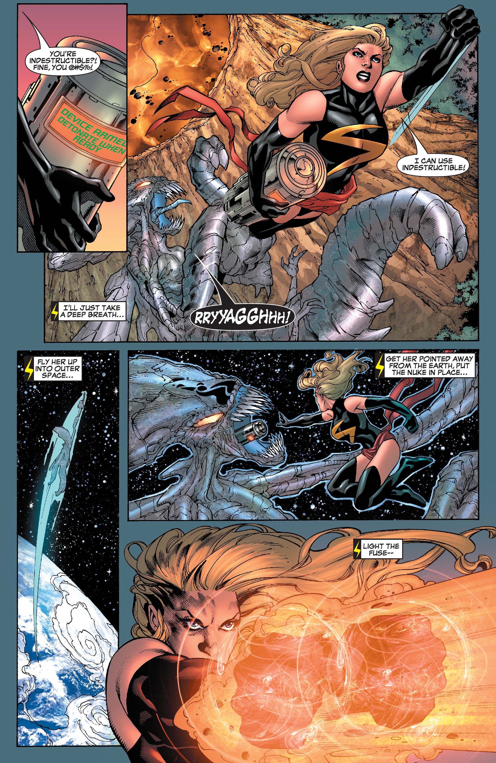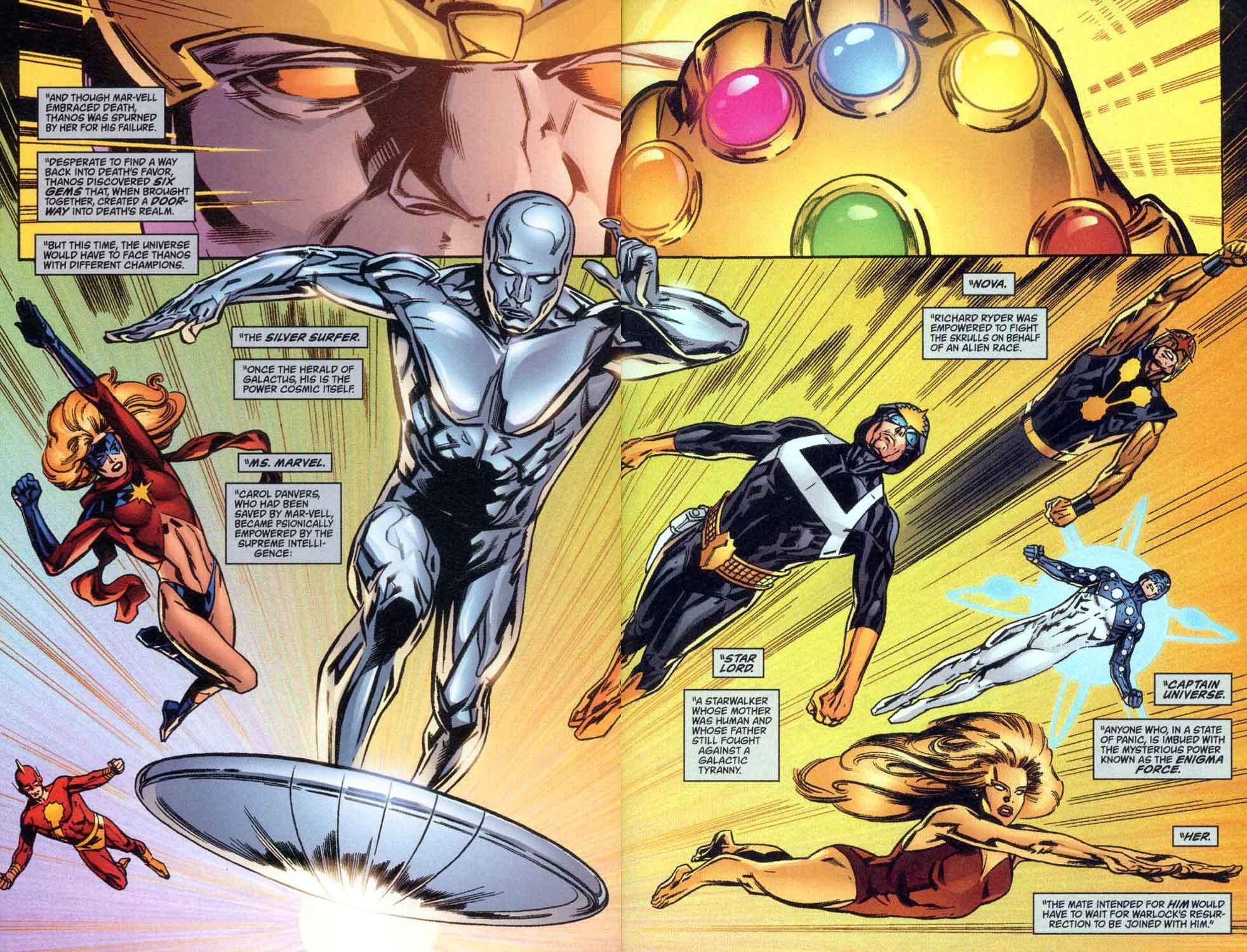 If Marvel ever decides to revisit Earth X, they should do a mini about that world's version of Infinity Gauntlet. Carol had her original costume on during it.