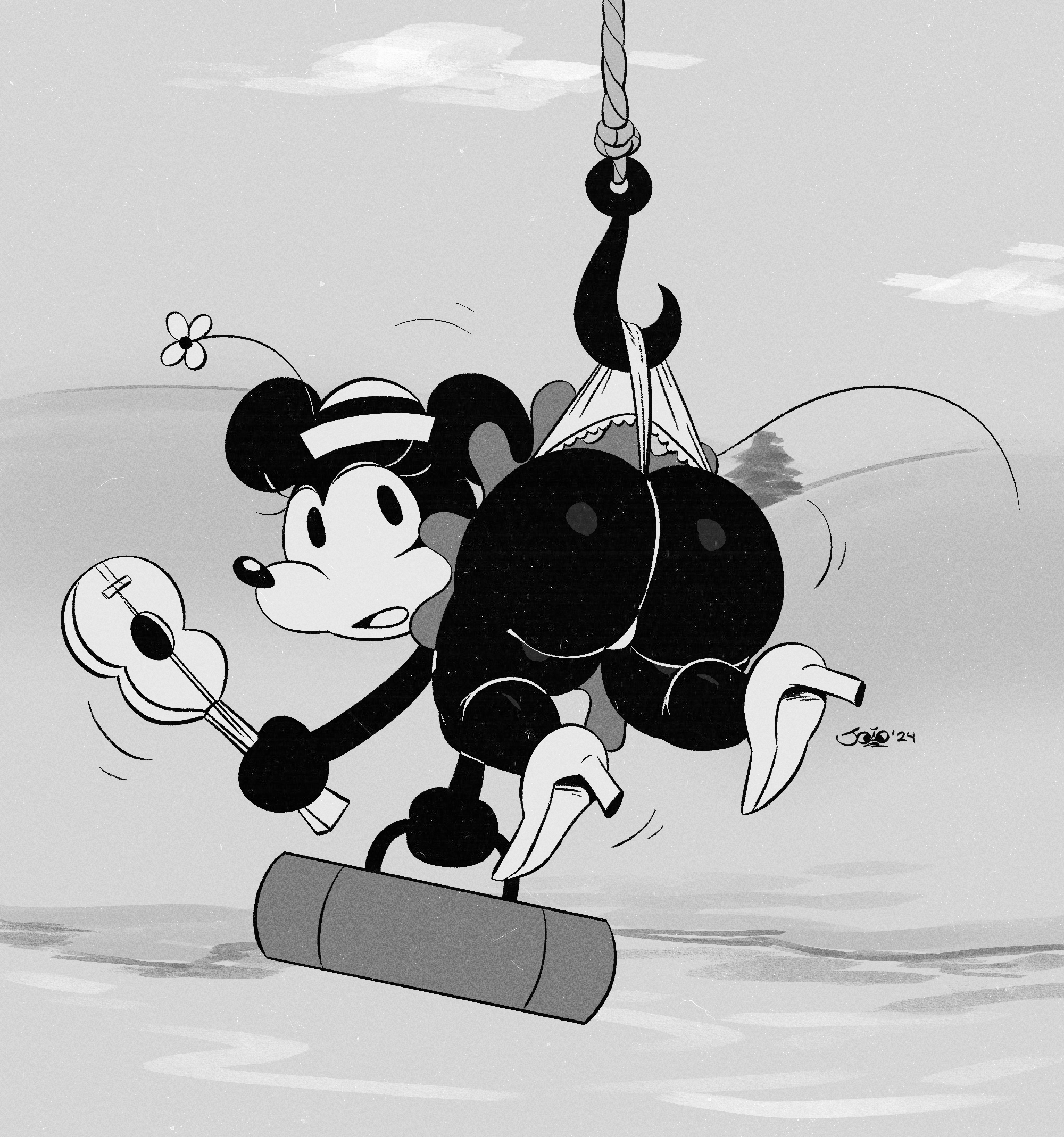 This is the first Mickey's cartoon produced, and there's a reason for why Disney only shows the opening of Steamboat Willy