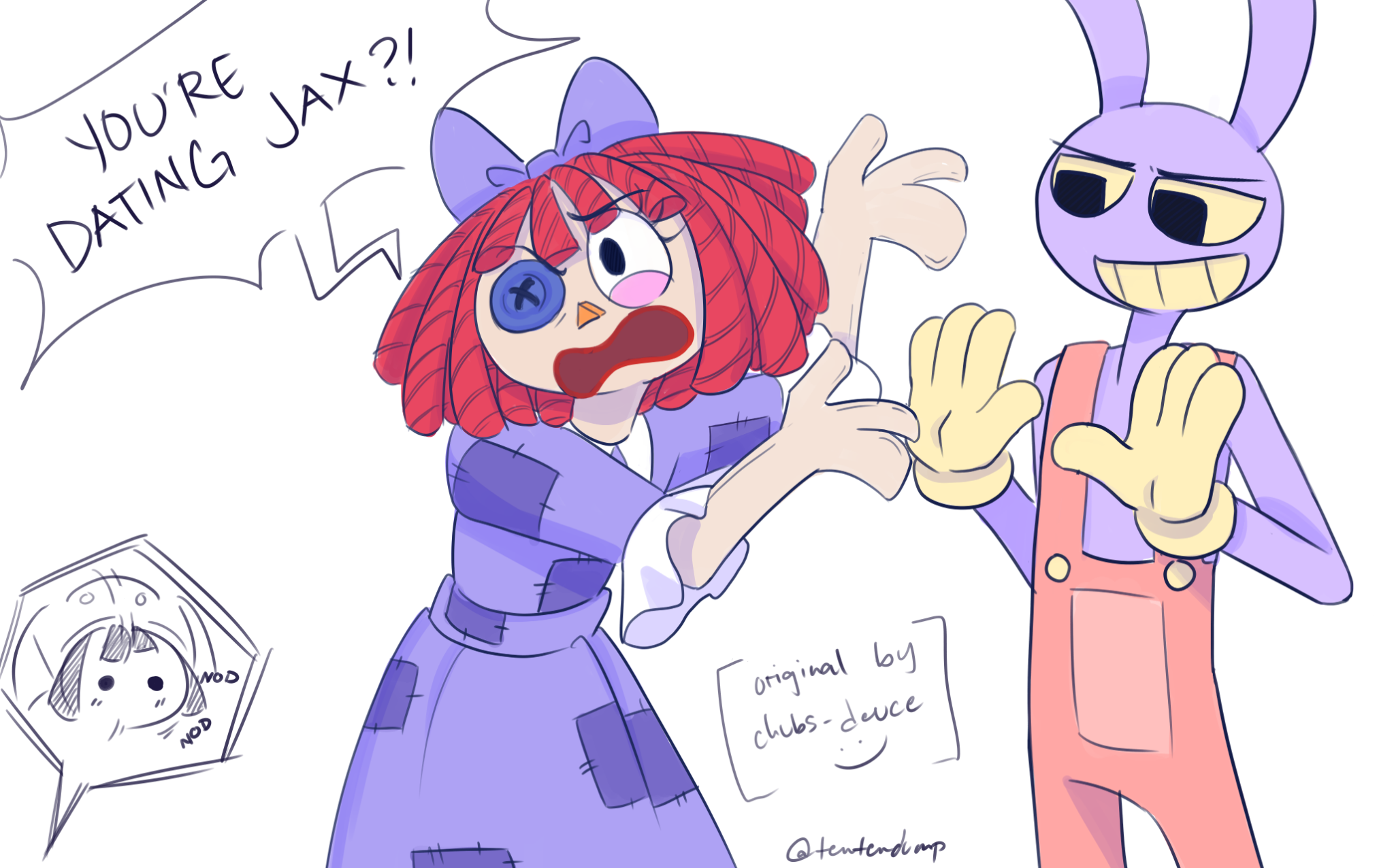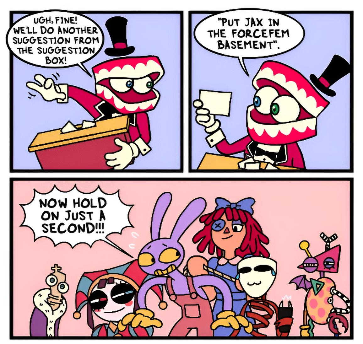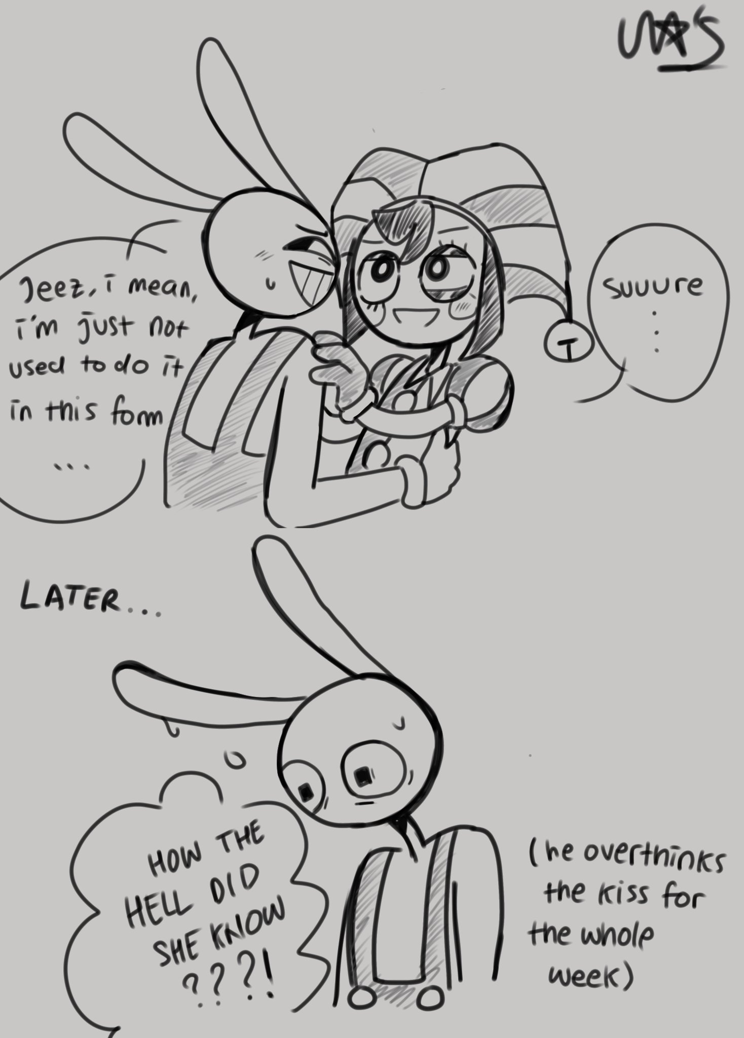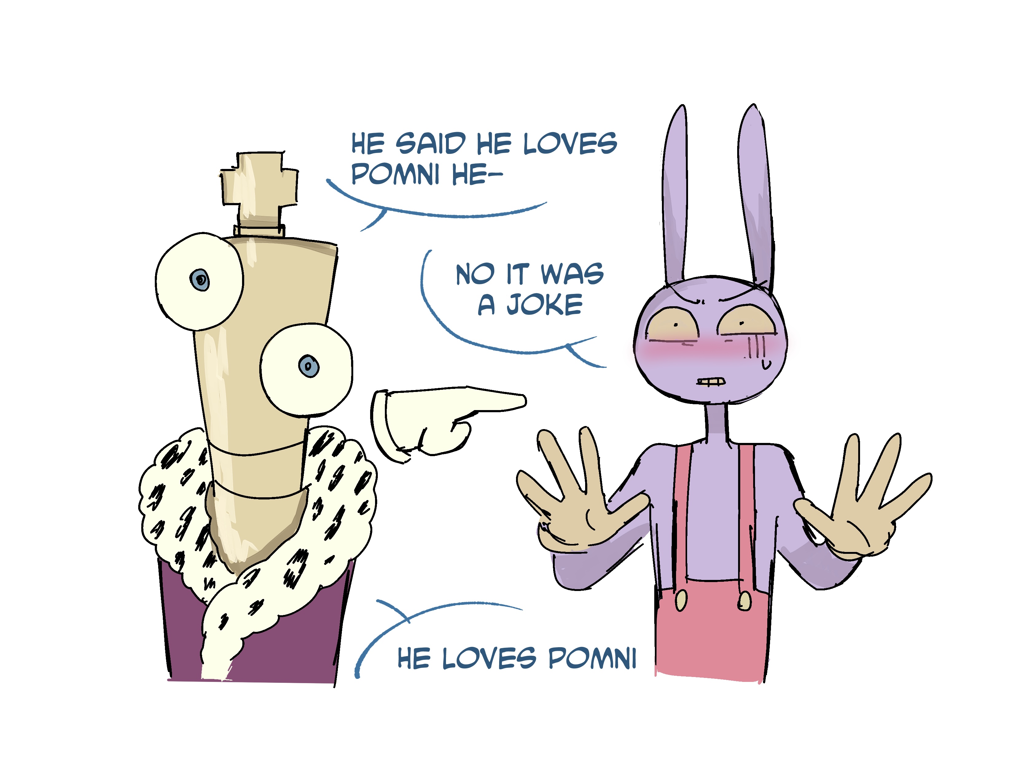 >D: someone knocks on pomni's door, she says "come in" and she says "oh, its you"