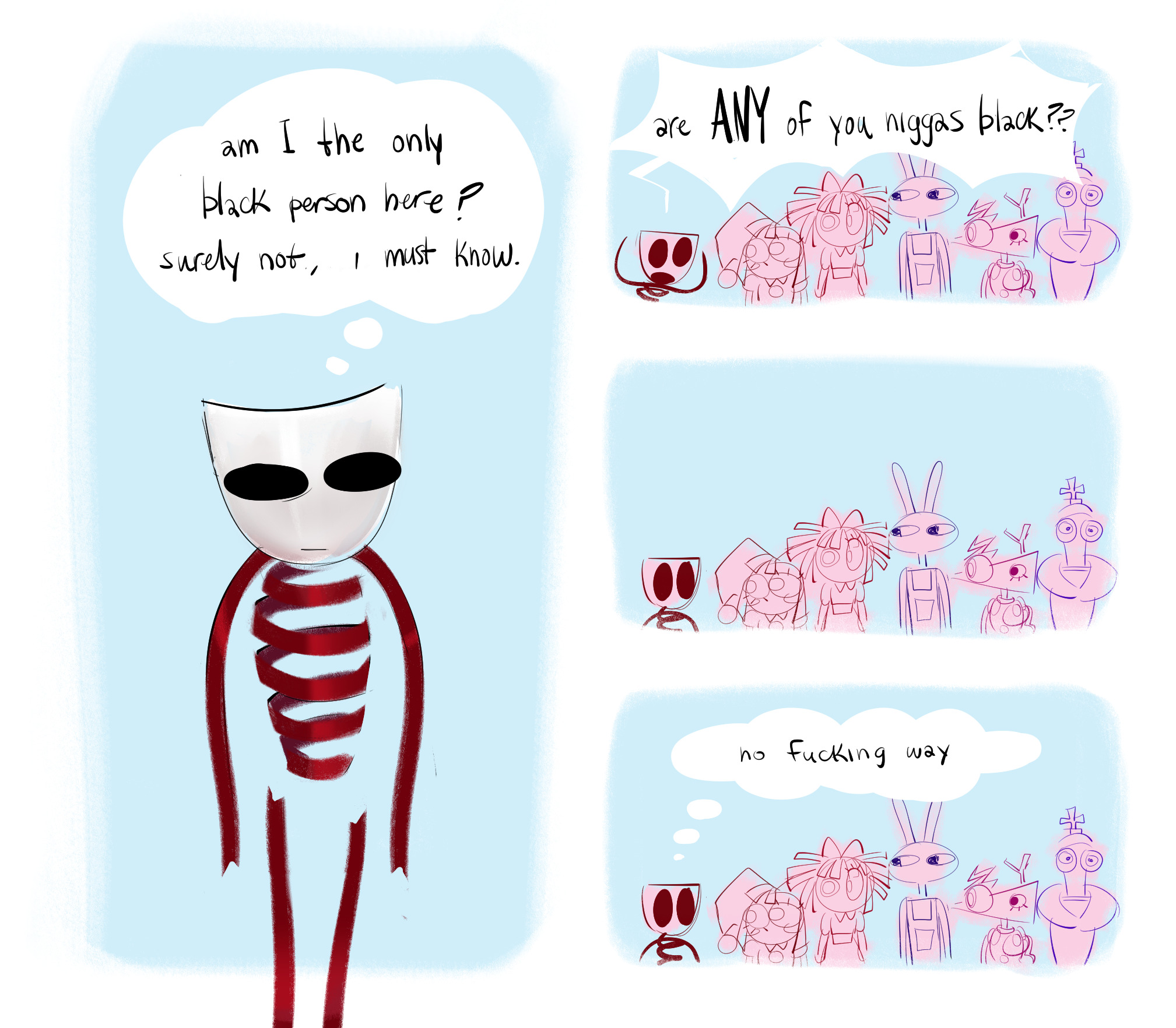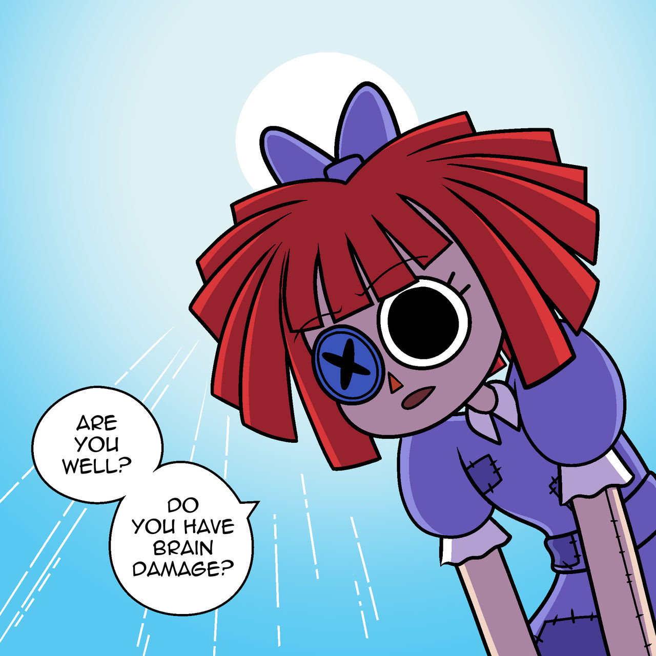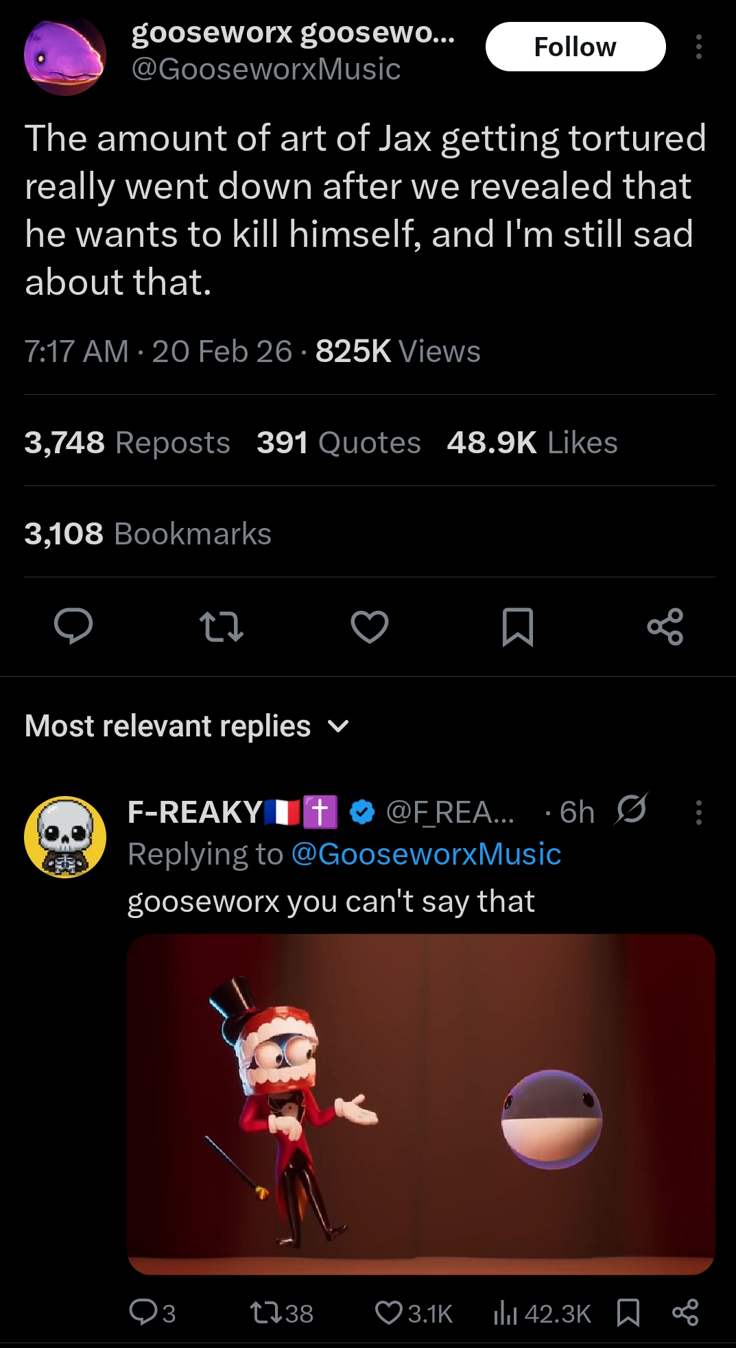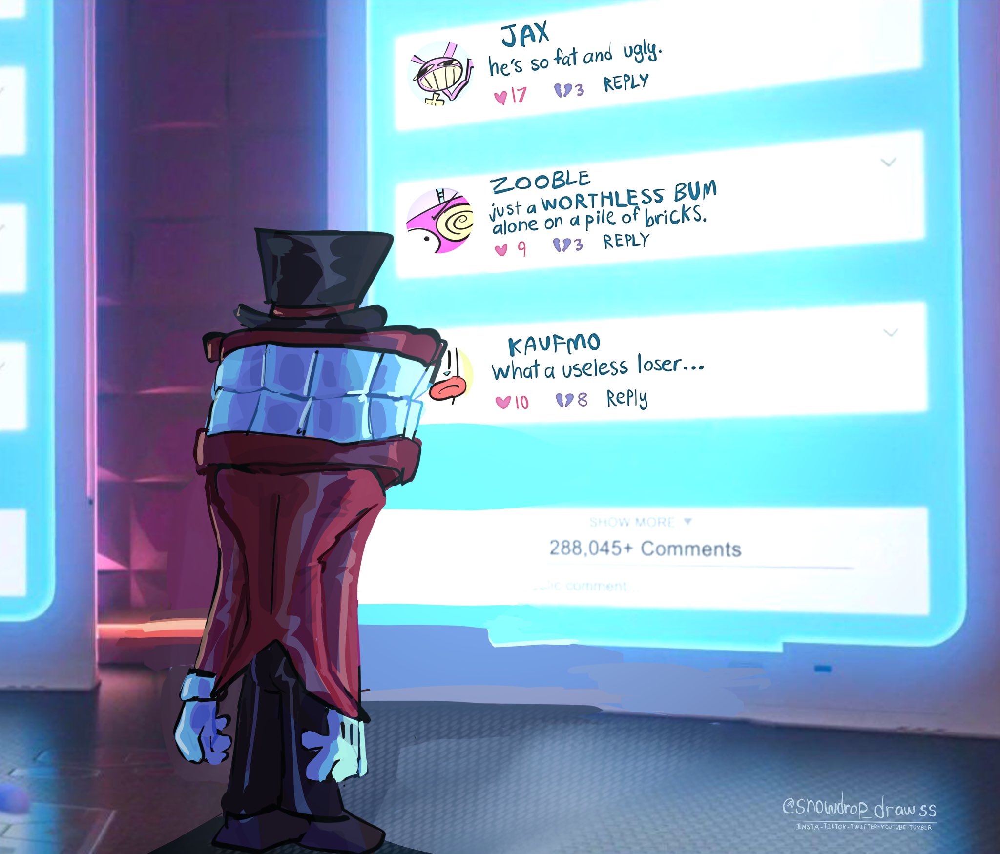 >D: someone knocks on pomni's door, she says "come in" and she says "oh, its you"