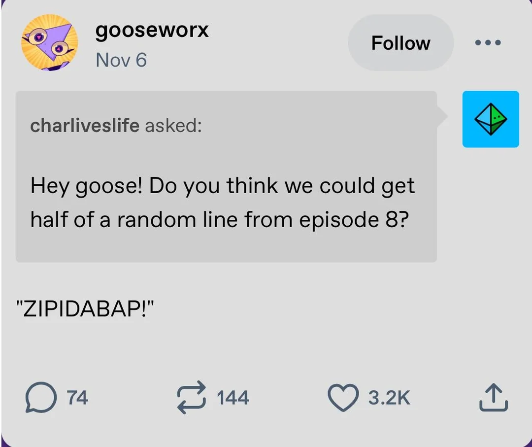 It's a line Goose revealed in a Tumblr ask