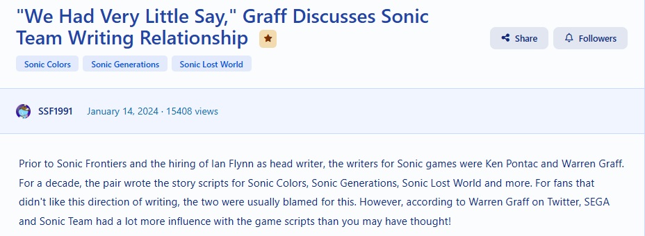 I never paid much mind to who writes for the Sonic games, but it's kinda funny learning how Sega and Sonic Team dictate how the games are written.