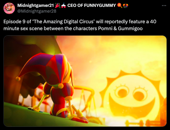 Some shitty cartoon news page posted that pic with a caption that said "The Amazing Digital Circus will end in two episodes" and people started shitposting with the pic saying shit like this