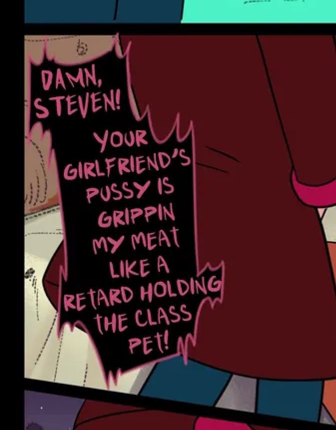 This guy's art is funny. He mixes screenshots of the show, drawings that were obviously traced, huge text boxes drawn in paint and original art. He's like the low-functional autists on DeviantArt but all he does is porn of Connie cucking Steven with Greg (kinda based IMO, Steven is a bitch that deserves it).