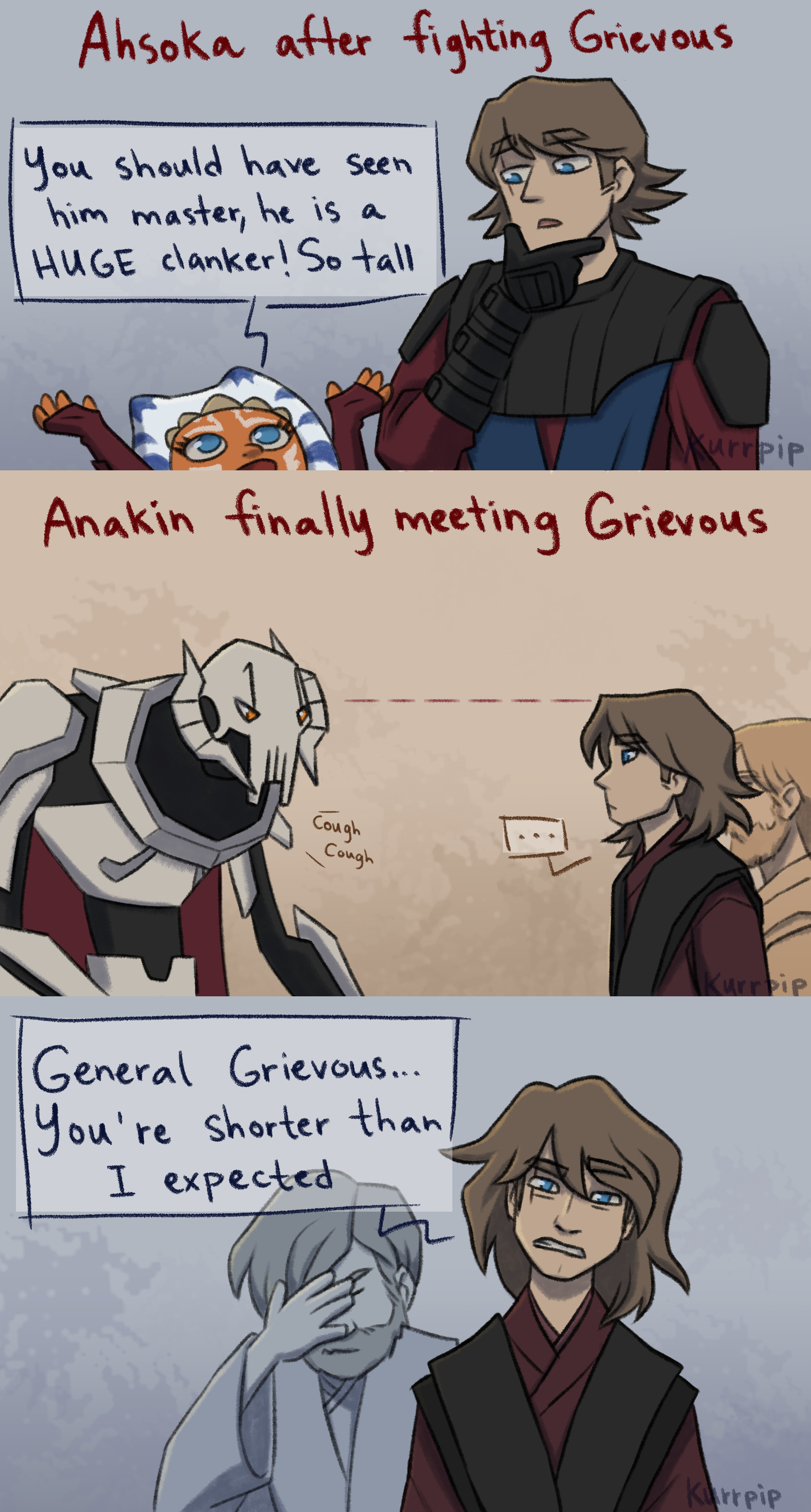 >>152717493>Clone Wars Grievous: I cough because I’m a bunch of organs in a bag piloting a mech>2003 Grievous: I cough because I’m sick of your shit