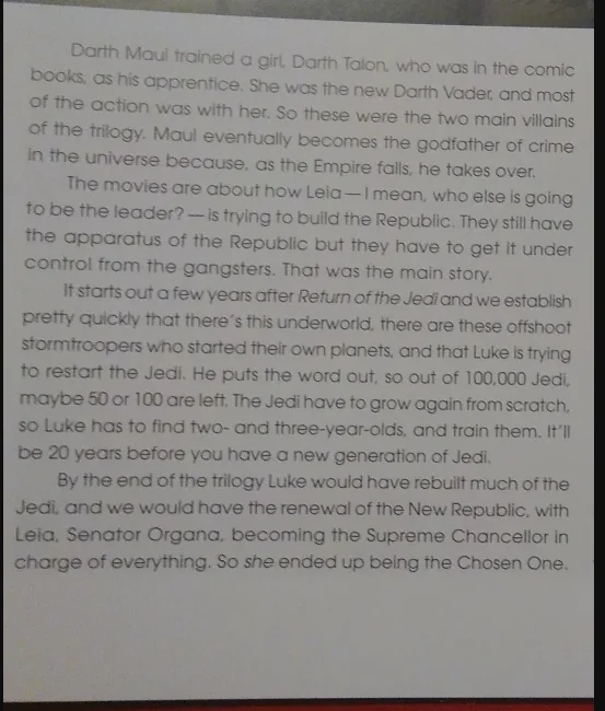 >>152715871A) The storygroup are pretty ineffectual and dont put their foot down on basic contradictions to the bloody movies lmao [especially as per the current canon, this meant nothing].B) This DOESNT come from that story, it comes from TCW's yoda arc, and its a shame cause that and having qui gon be able to lift stuff is a huge issue. And come on it is absolutely not the intent of those stories that ghost obi wan is lying to luke to make him do that, because the whole point is obi wan finally telling him the truth. It just goes totally counter the narrative of the very scene! I think lucas just forgot.
