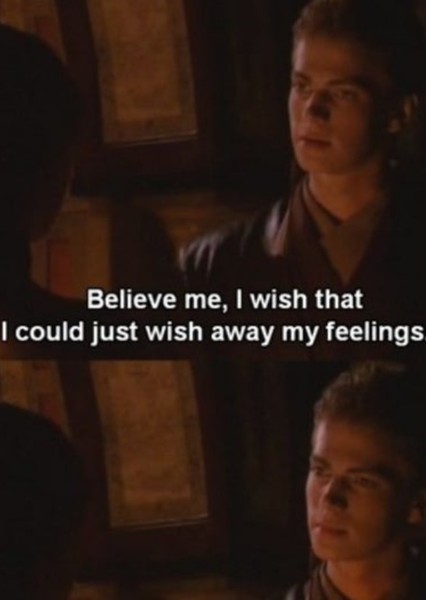 Explain to me what Padmé saw in this guy that caused her to fall in love with him so easily. While TCW Anakin is a flawed but compelling character who matured quite a bit during the war, Padmé fell for the AOTC version. At that point, he was immature, disrespectful, and as emotionally volatile as an angsty 15 year old, despite being like 20. He also confessed his massacre, and she was weirdly forgiving of that.Is this a better love story than Twilight? I would honestly feel better about it if the Force had simply compelled her to fall for him.