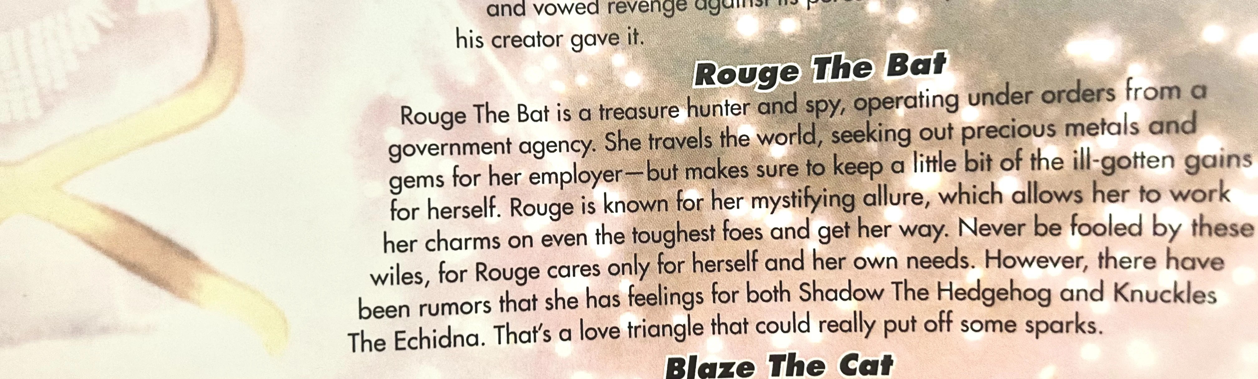 >>152717603“Team Dark isn’t a thing. It’s an out-of-universe brand, apparently. They are not a unit, they are not even friends”https://www.sonicstadium.org/articles/sonic/sega-does-not-consider-team-dark-to-be-teammates-or-friends-according-to-flynn-r1431/Funnier quote:>"Ian, do Shadow and Rouge have any romantic feelings for one another or are they just friends">"According to Sega, neither