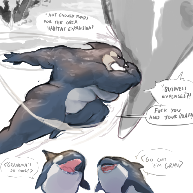 >>152806423I like the idea of knocking up Grace and making babies that are 100% killer whale, but they've got human-level sentience and intelligence.