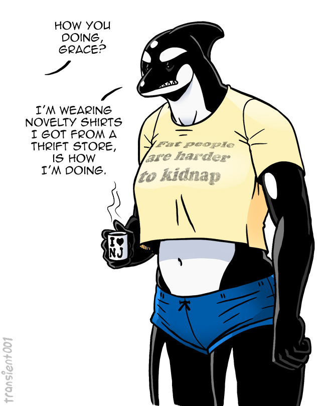 >>152739725>>152743011it's important to remember that at this point she wasn't actually a whale woman at this point, she was just a roided out nerd in an orca-themed wetsuit