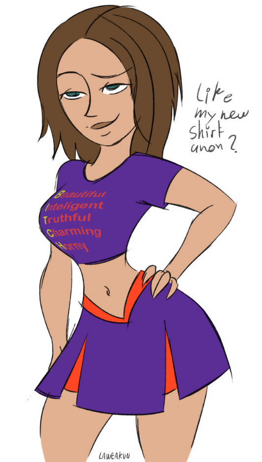 >>152784265>>152785555>>152785716>>152790594No butt and point boobs but she does have hips and legs. Also insane 2 edits of the skirt shot and one anyone can edit themselves https://www.deviantart.com/boiflamby/art/Kim-there-s-a-problem-under-your-skirt-1274017734