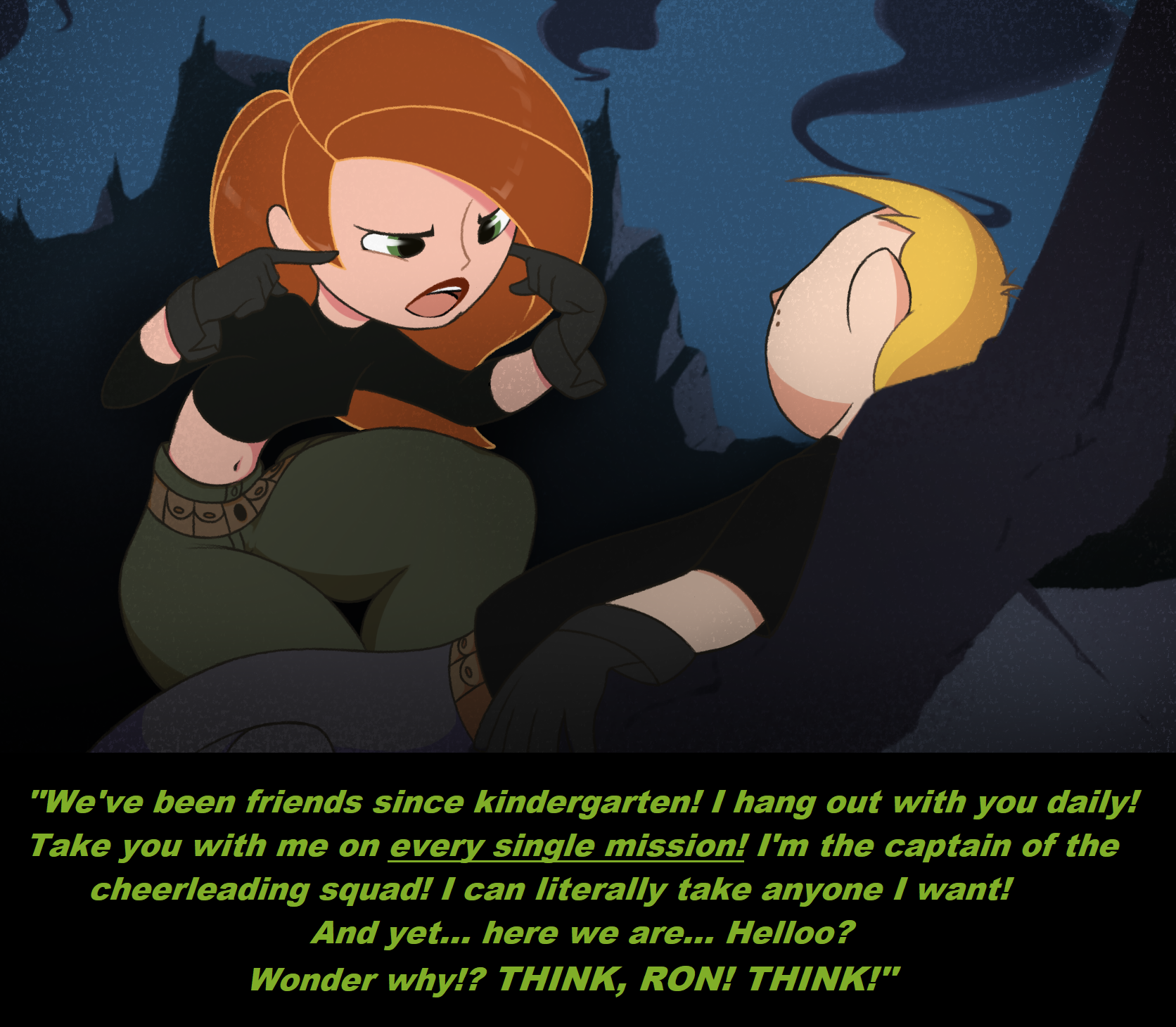 I for one would not like a KP reboot. Especially during the current era of lesbionics.>>152750645I'd say Kim was grooming him.>>152748253I feel the implied Shego/Drakken hook up applies more. Though i would've liked more Yori shenanigans for a love triangle>>152757630Who knows. A cunny fetish?