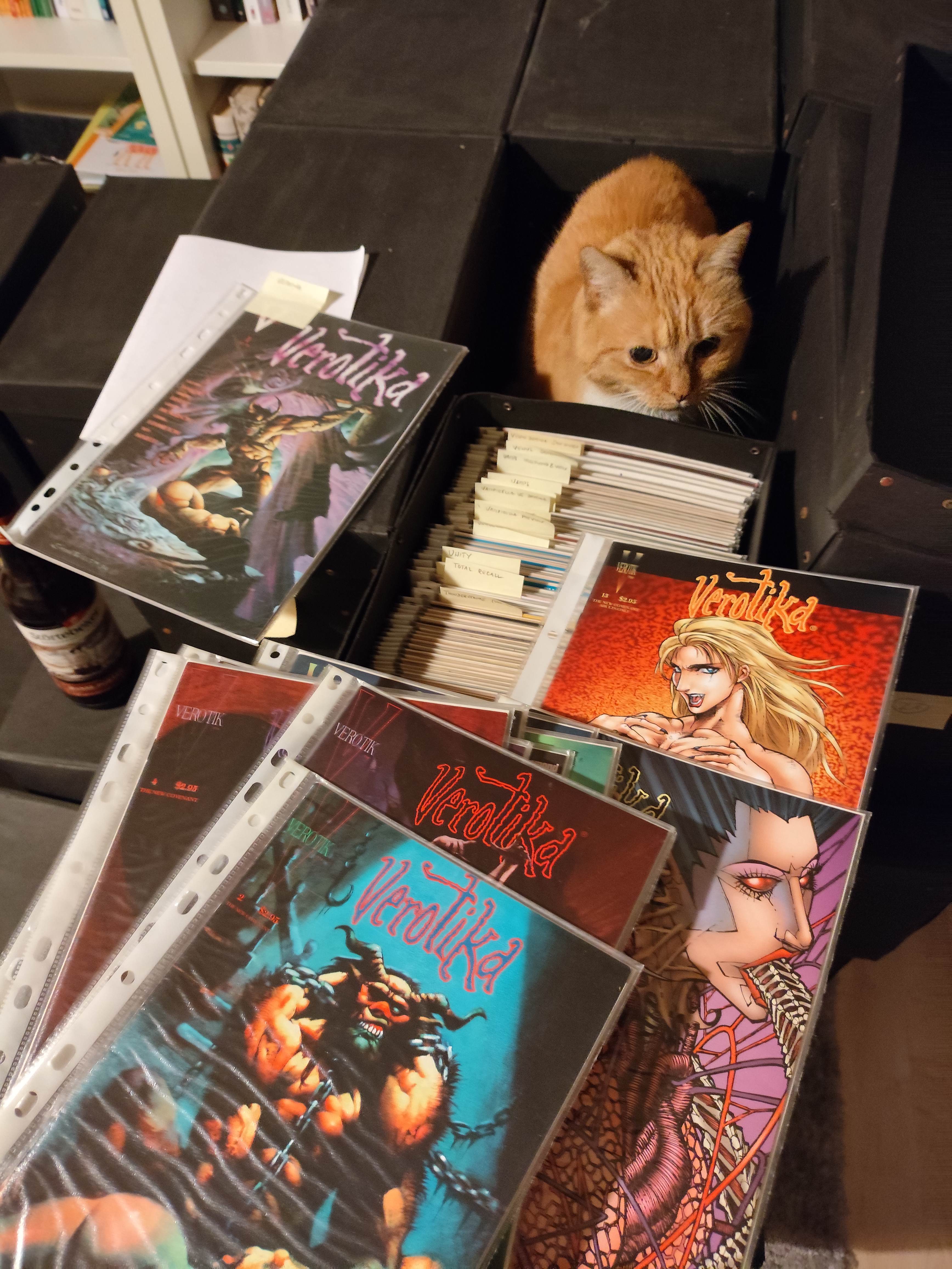 Jaguar God is wild, next box has even more Verotik stuff, not sure I can post some of those covers hueheGet out of there cat>>152750978Yep. Don't have to work tomorrow and I'm a couple of beers in, so I thought I might as well. Not sure I should, kinda hard to get the bags closed up again afterwards.>>152751166 Oooh that's good to know, ty!