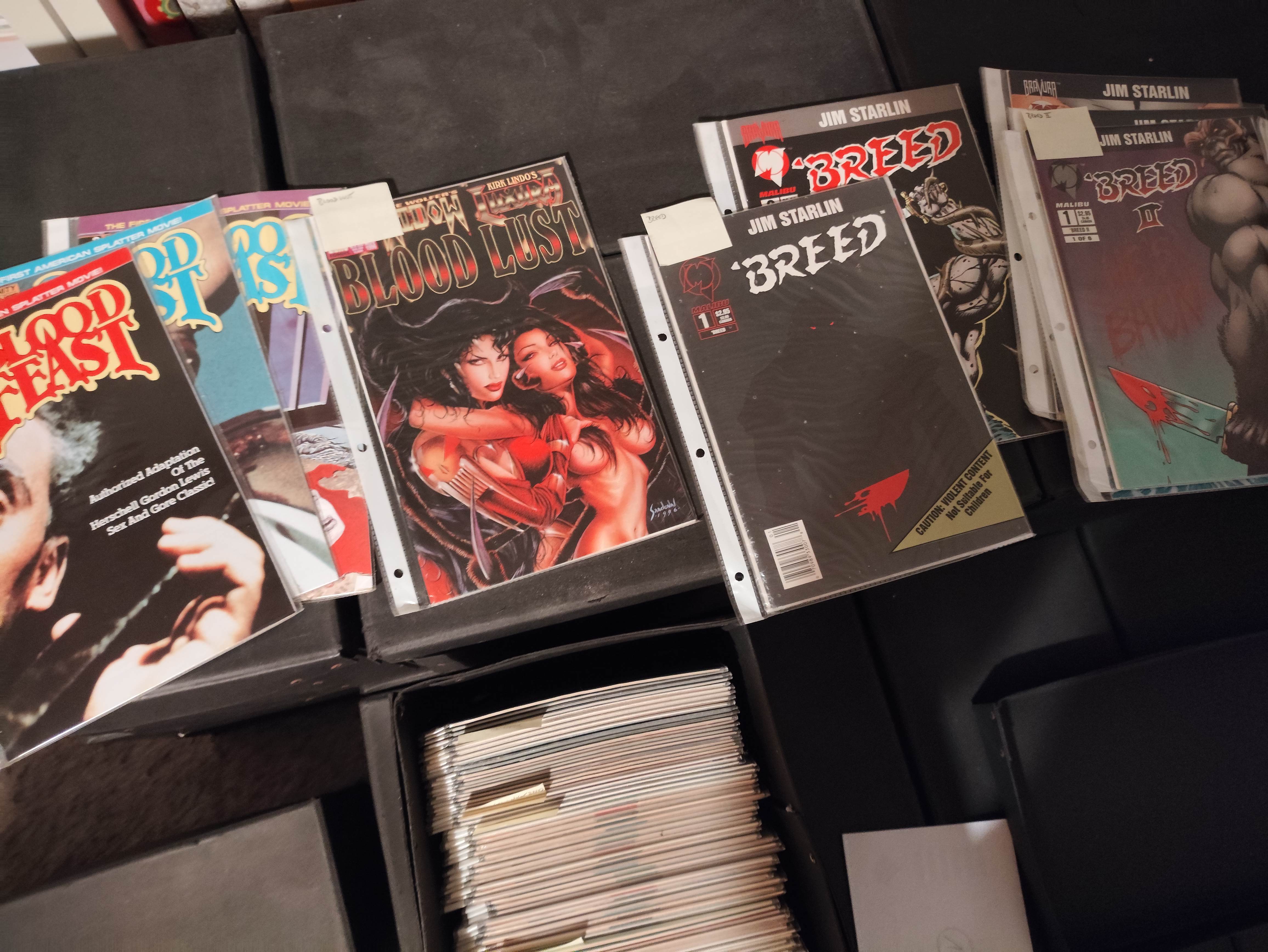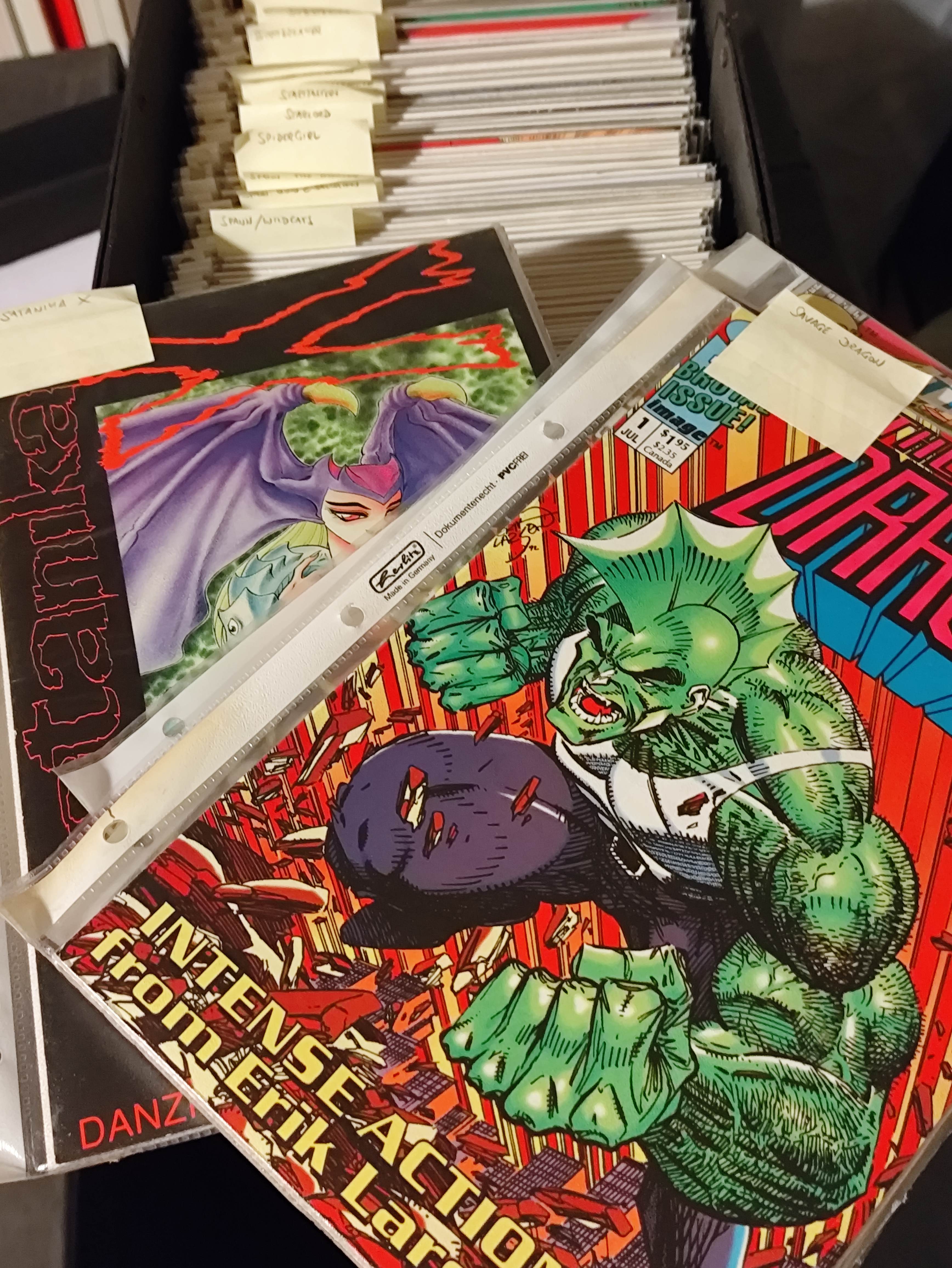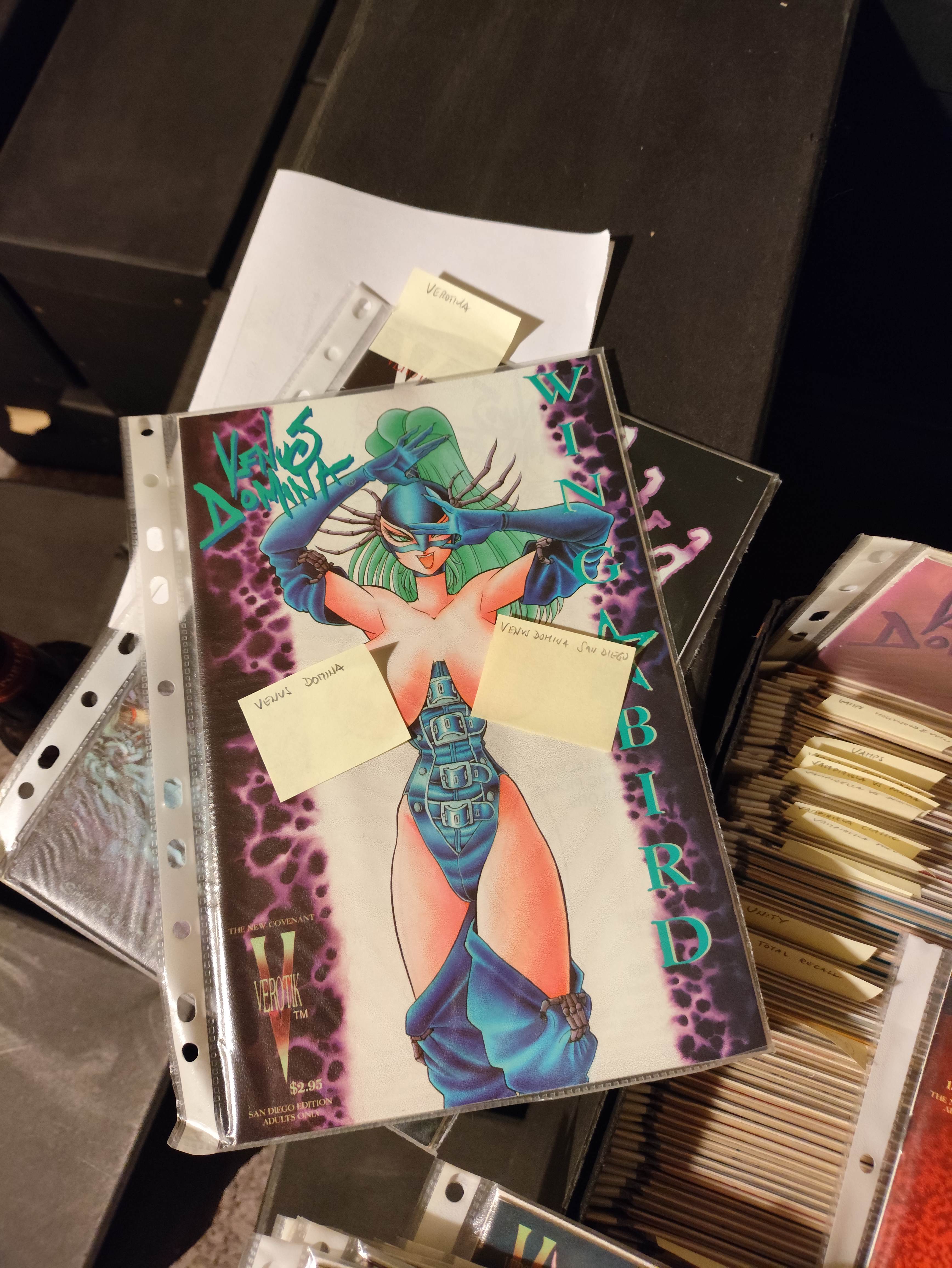 I'm baack! Got me some cheapo gloves and a spreadsheet ready, time to do some inventory. Current box got a bunch of the Verotik stuff, as well as other sexo things. All labeled with post-its, I could just list them>>152752725No idea about the condition, I tried to read up on it yesterday but most of the criteria seem kinda subjective? They don't look bad tho, some creases along the spine mostly. >>152752808Yep those are all in there somewhere from what I've seen!>>152754738N-no I put my "No Girls Allowed"-plaque on the door, she will never find out>>152756074Yeah those looked really cool. Might take a closer look later.>>152754709 I will in a bit, gotta find the box they were in. I made a mess yesterday