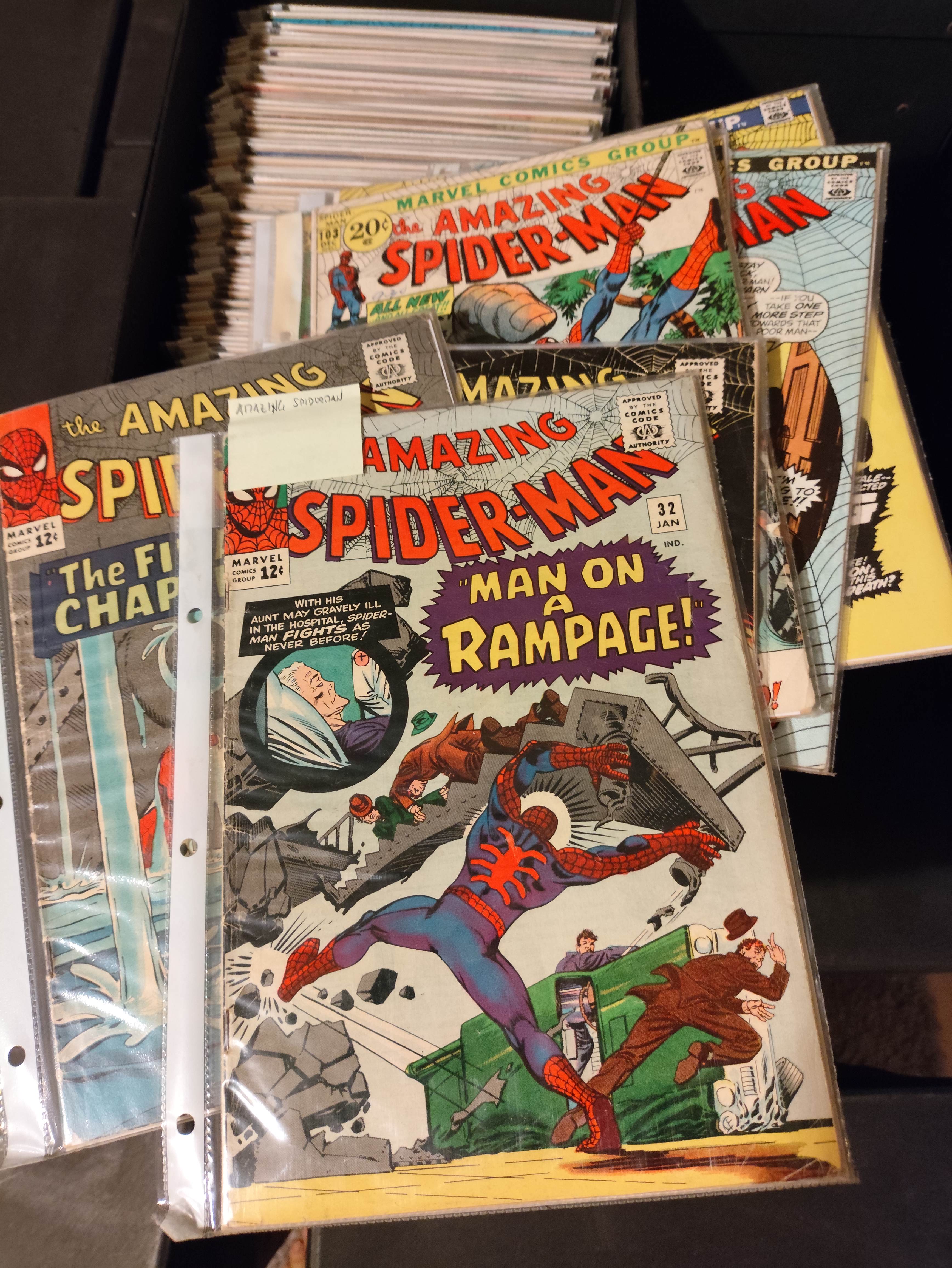 >>152751464That Amazing Spiderman 33 can go for a lot as well. What is the black cover behind 32 there?