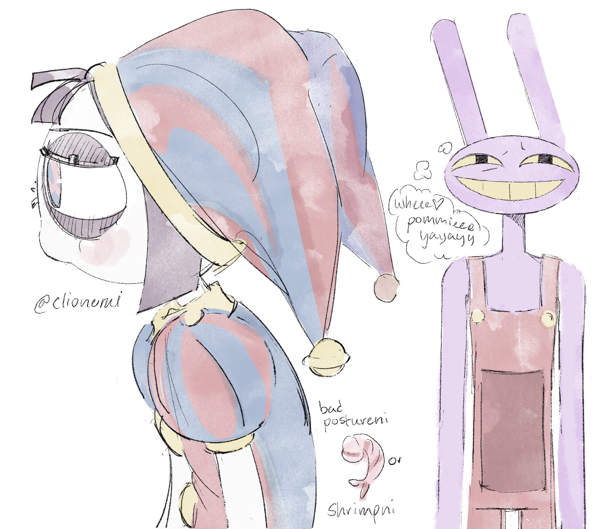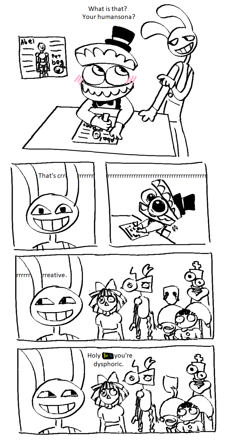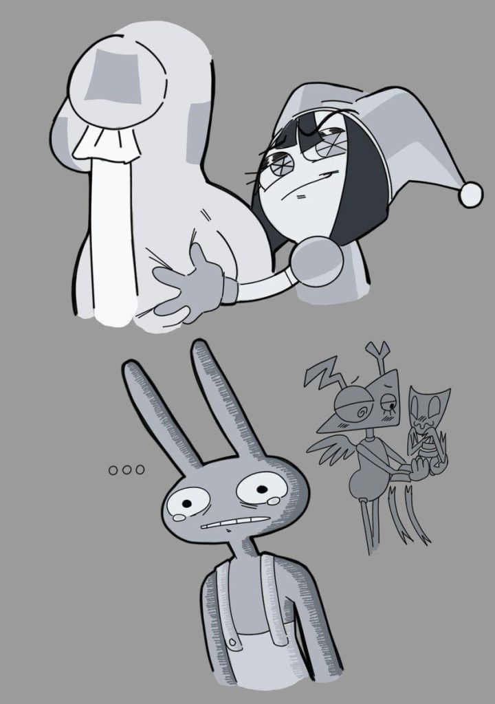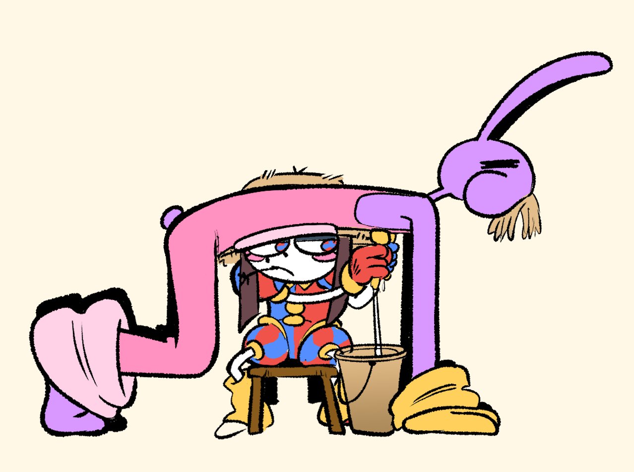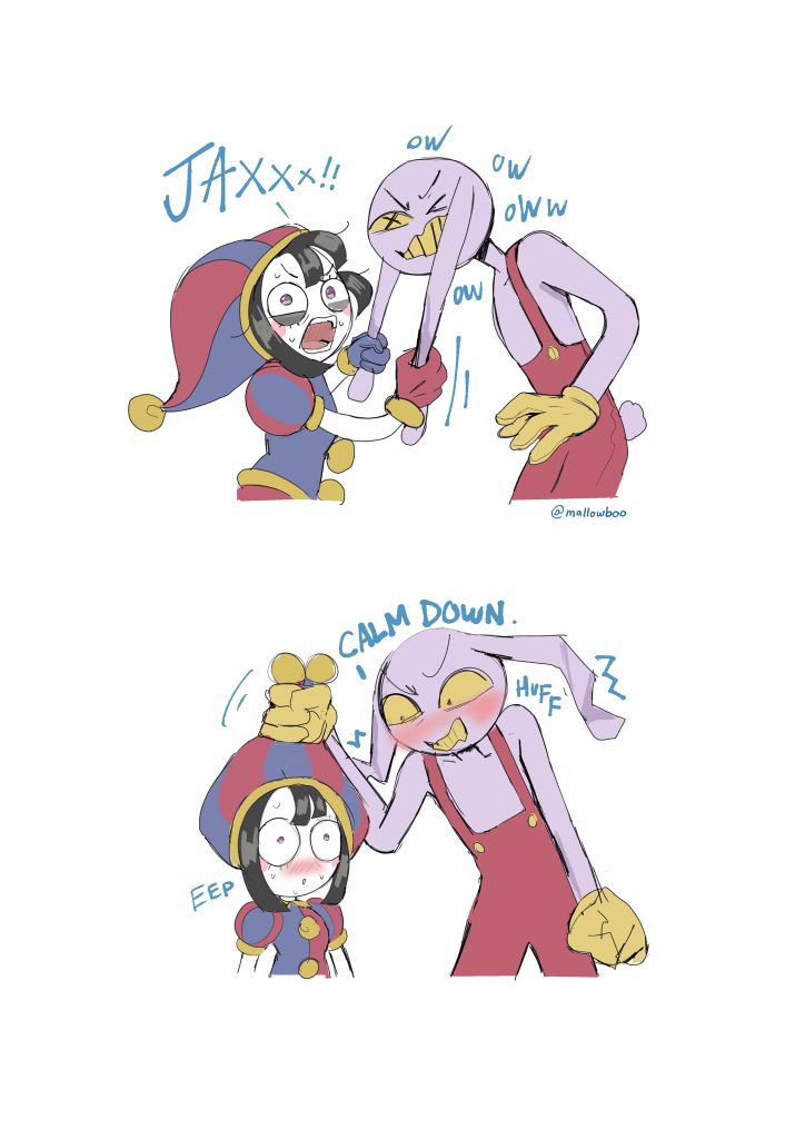 If Pomni’s hat were removable, you know Jax would have destroyed all potential for good will by stealing it every day and hiding it somewhere too high for her to reach until she finally snaps and kicks his ass, but not in a loving way