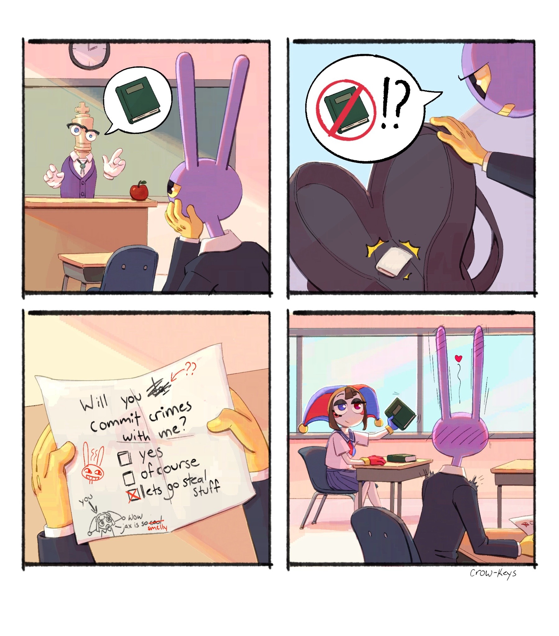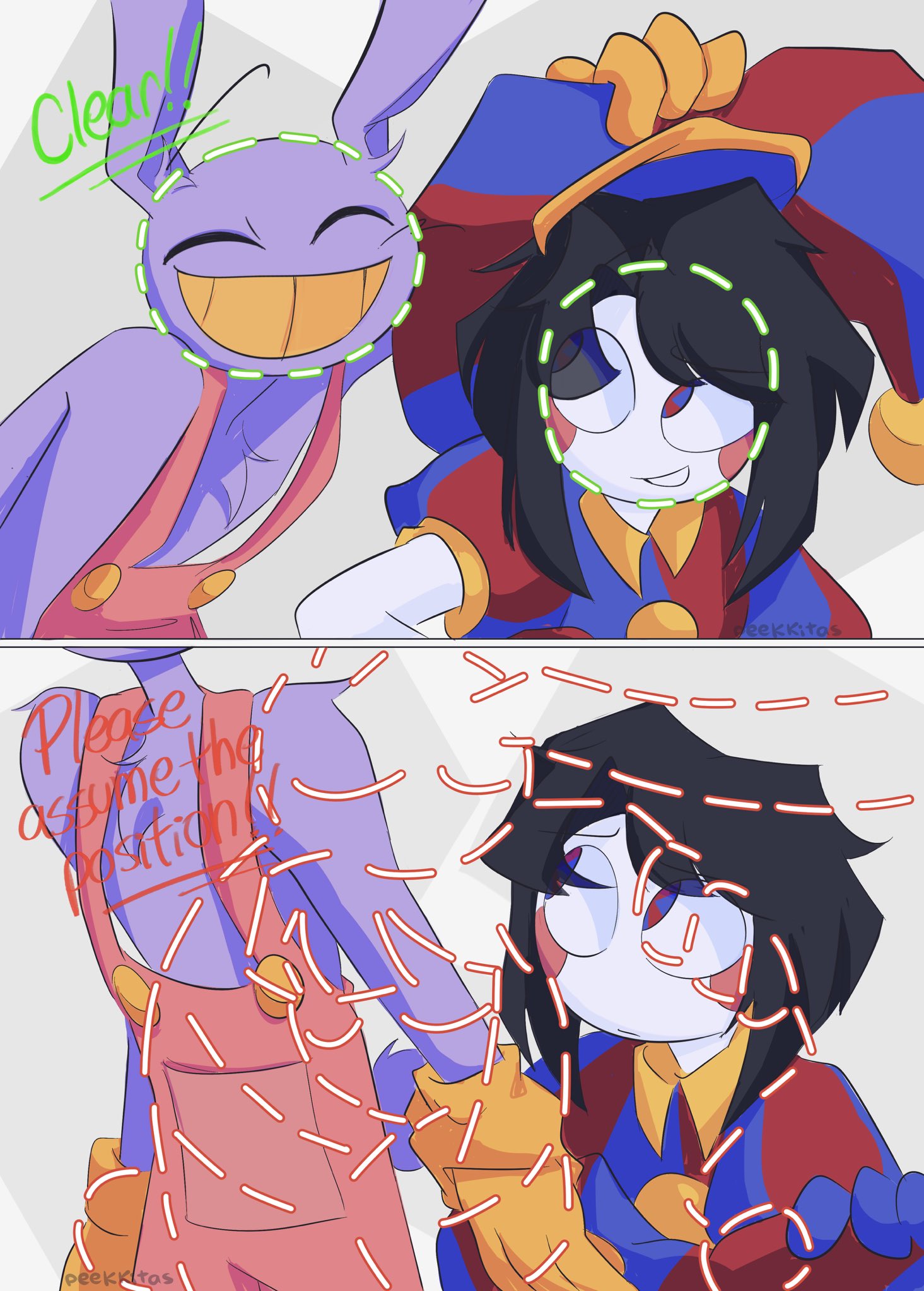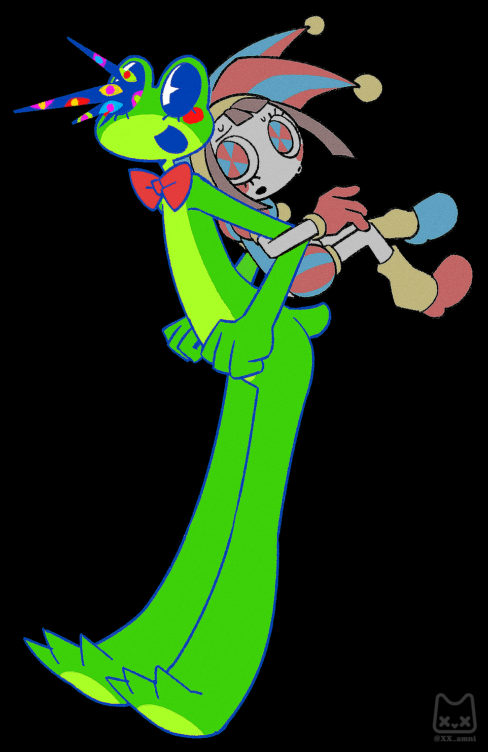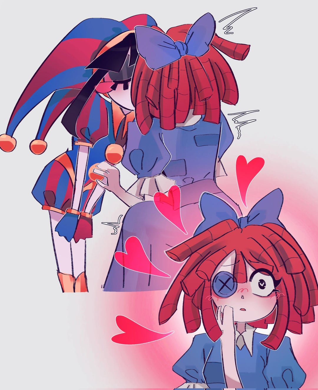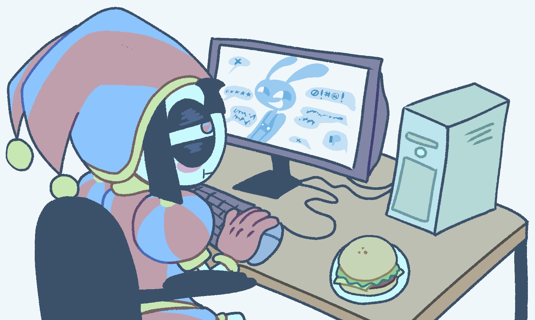 If Pomni’s hat were removable, you know Jax would have destroyed all potential for good will by stealing it every day and hiding it somewhere too high for her to reach until she finally snaps and kicks his ass, but not in a loving way