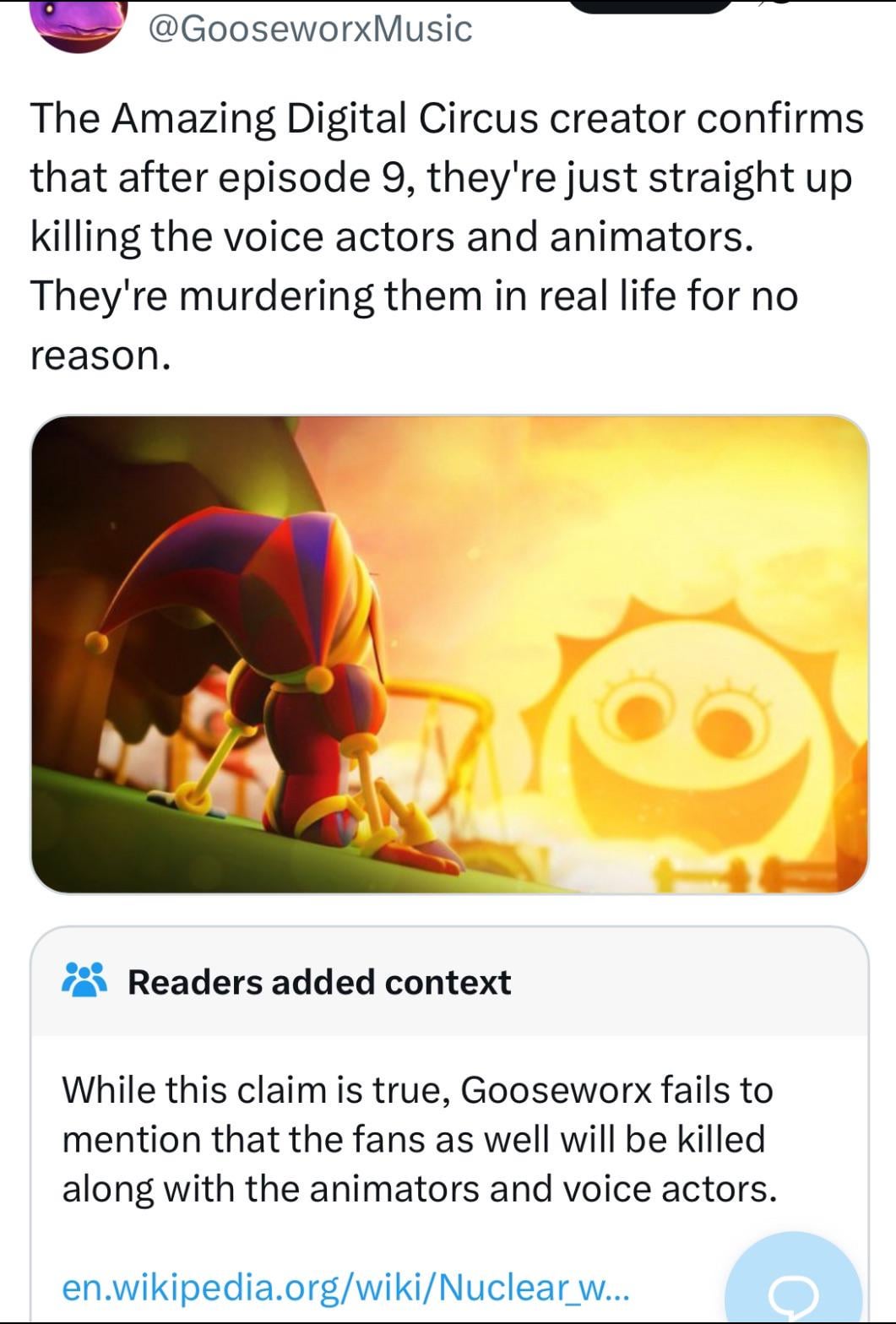 >"an NPC. Pomni this is Good News, you'll live for thirty years!"