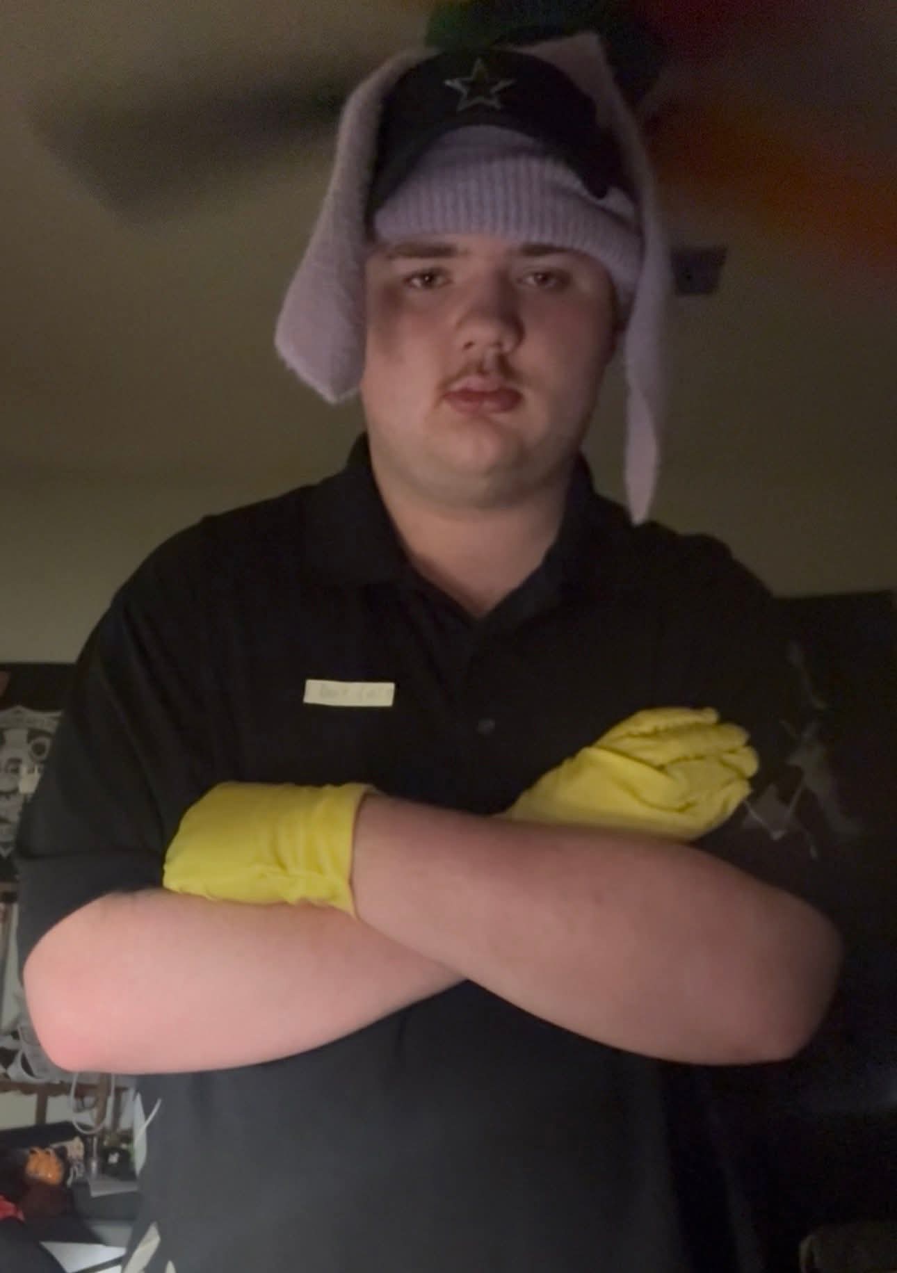"What? Its my ribbit cosplay! Can anyone tie a bow tie?"